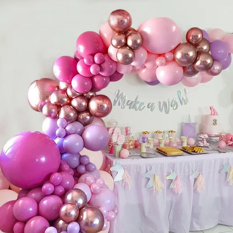 Розового цвета на день рождения воздушные шары гирлянда арки Свадебный Birthyday Baby Shower вечерние украшения для Пижама-комбинезон для детей, Globos шар фон