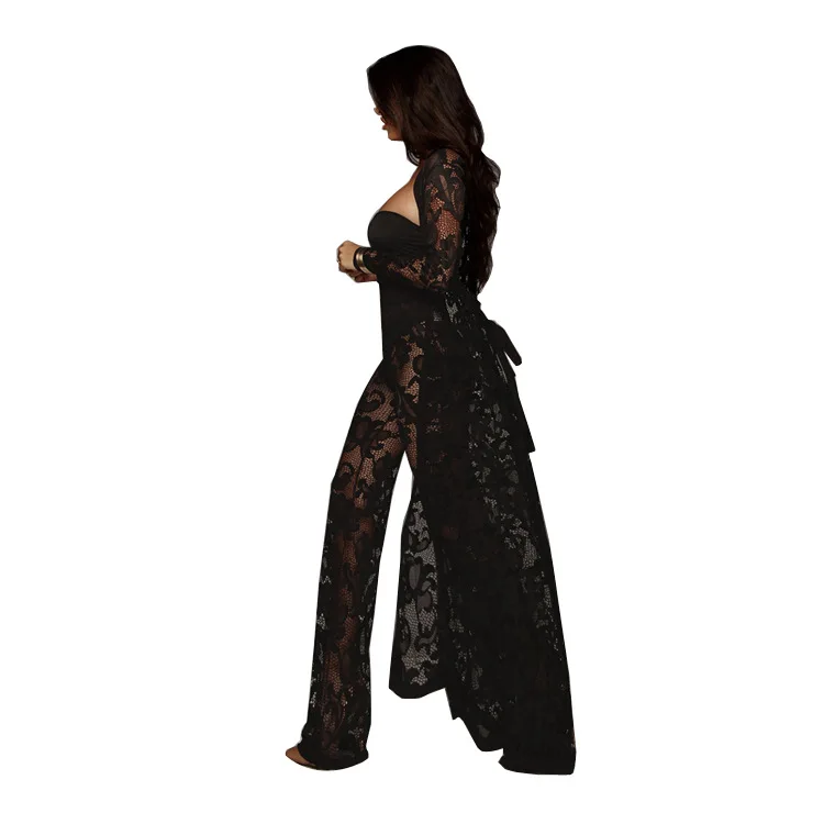 Женский костюм секси Вечеринка платья с открытыми плечами широкие брюки с широкими штанинами; Комплект из трех предметов повседневный костюм для девочек длинные платья женские вечерние ночь