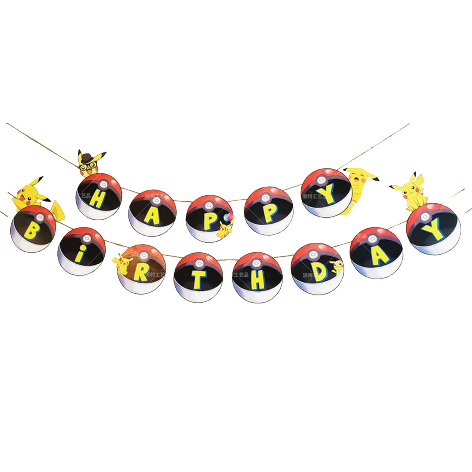 Набор для темативечерние с покемоном, украшение с покемоном, флагом, карманом, эльфом, картой для торта, покемоном, украшение для детской вечеринки, дня рождения