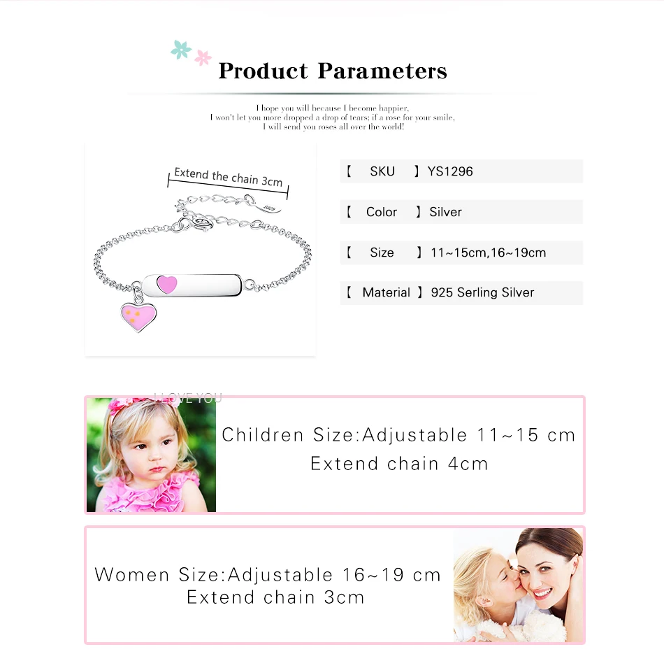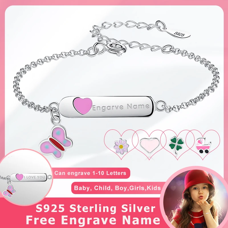 Оптовая Продажа Реальный 925 стерлингового серебра ювелирные изделия для детей, изготовленный на заказ браслет для девочек Выгравируйте имя милый браслет, подарок на день рождения