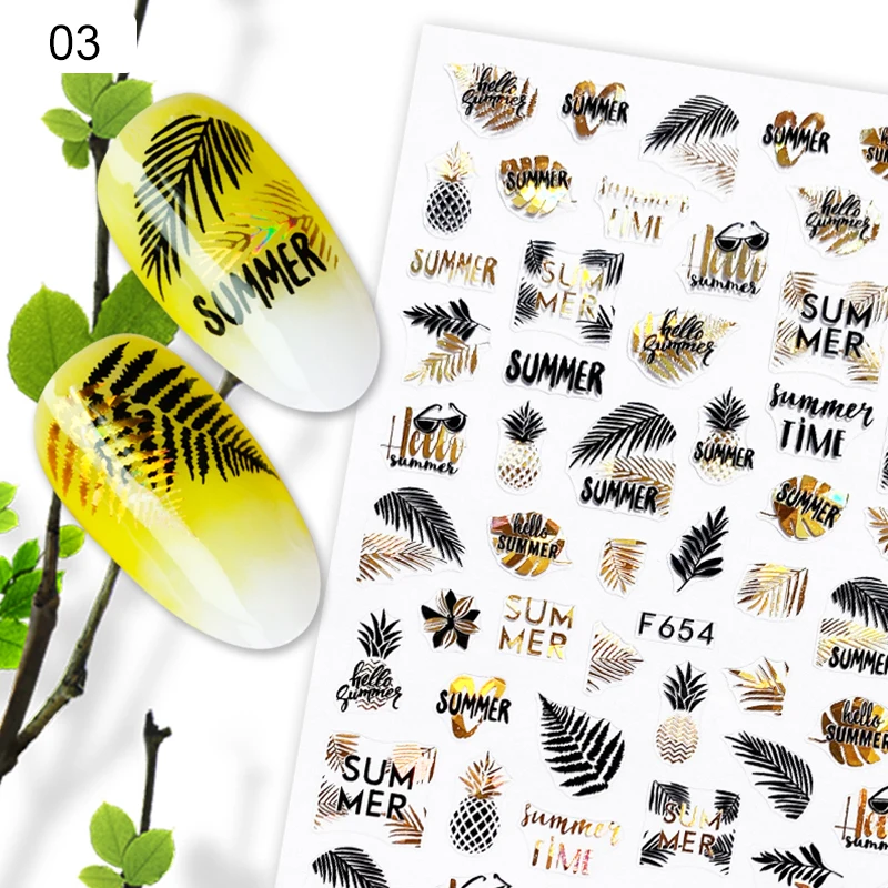 1 шт., летние блестящие наклейки для ногтей, золотые, черные, белые...