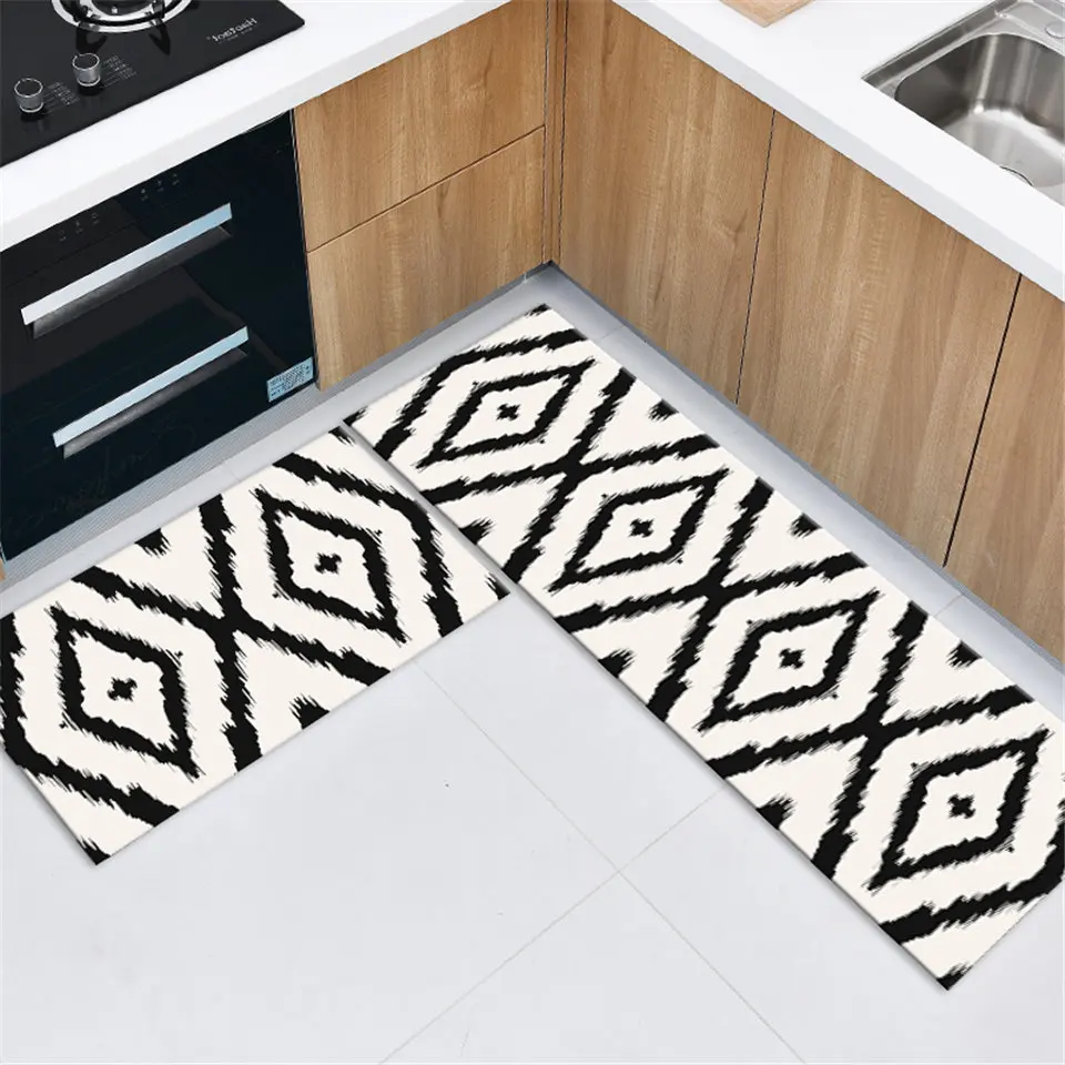 Черный, белый цвет коврик с геометрическим орнаментом входной коврик дом Nordic украшения Марокко в этническом стиле Стиль коврик Кухня бегун коврик анти-скольжение