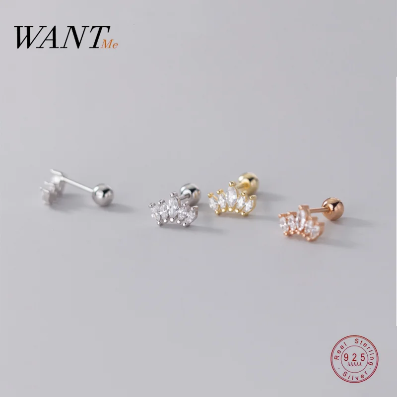 Женские серьги-гвоздики WANTME, из серебра 925 пробы, в богемном стиле, Роскошные серьги-кафффы с изображением короны и циркона, Подарочные ювелирные украшения, 2021