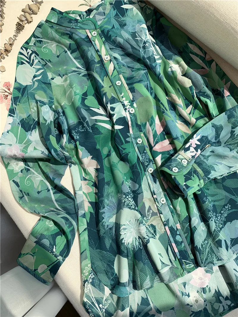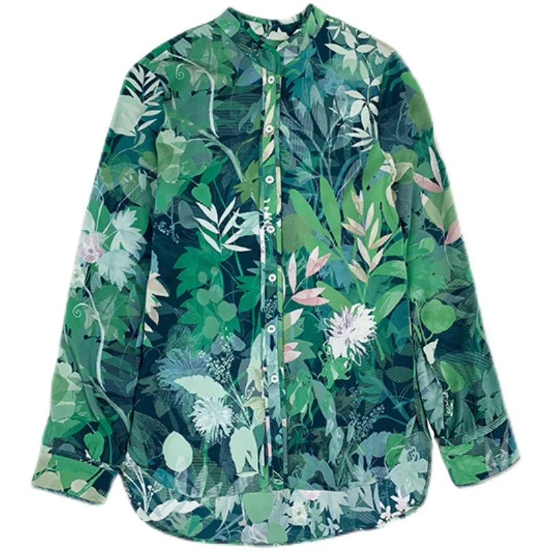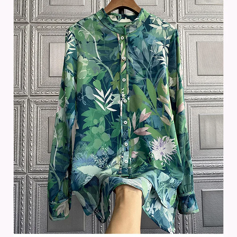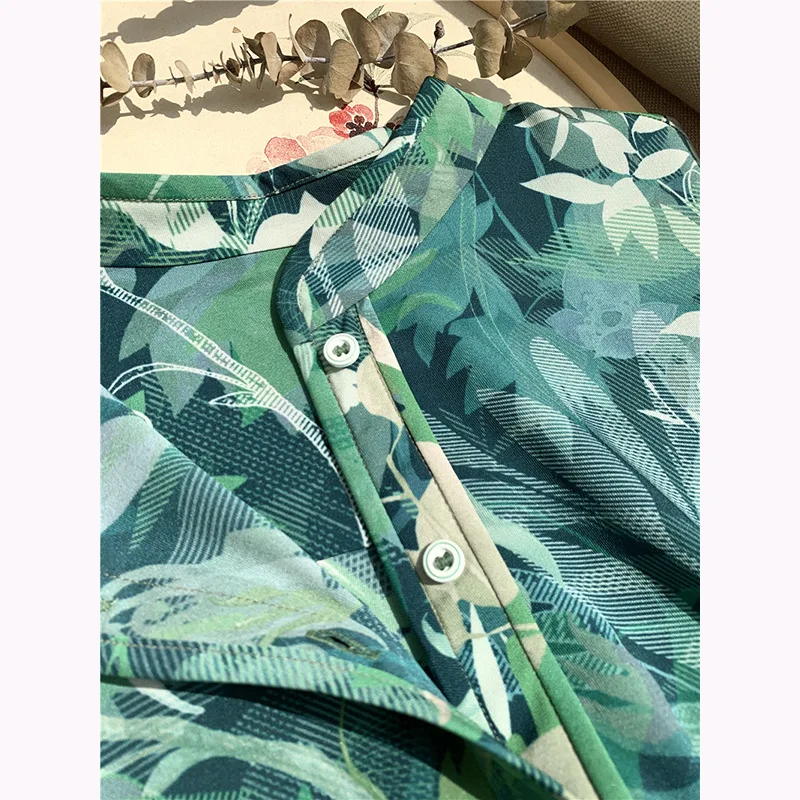Женская рубашка с принтом в виде зеленых листьев, лето 2021