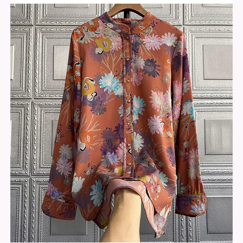 Дизайнерская Женская рубашка в стиле ретро из органзы, контрастная ...