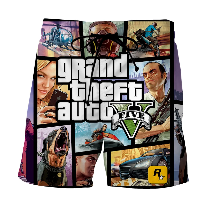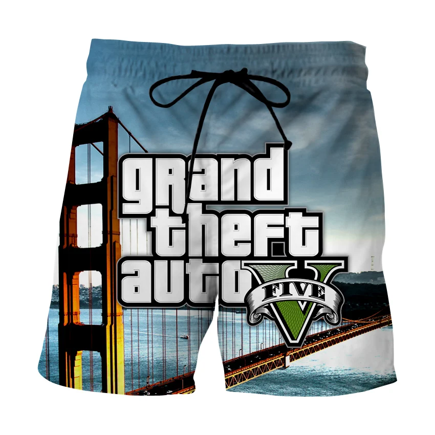 Мужские пляжные шорты GTA5 Grand Theft с 3D принтом, купальник для фитнеса, Одежда для пляжа, лето 2021