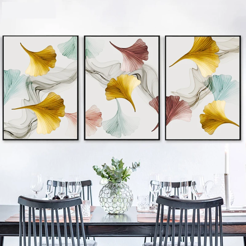 Современная картина с листьями гинкго, постер с золотыми листьями и принтом растений для гостиной, туалета, домашний декор, настенные художественные картины
