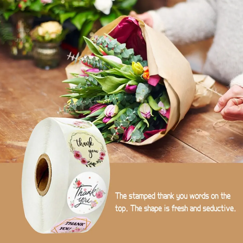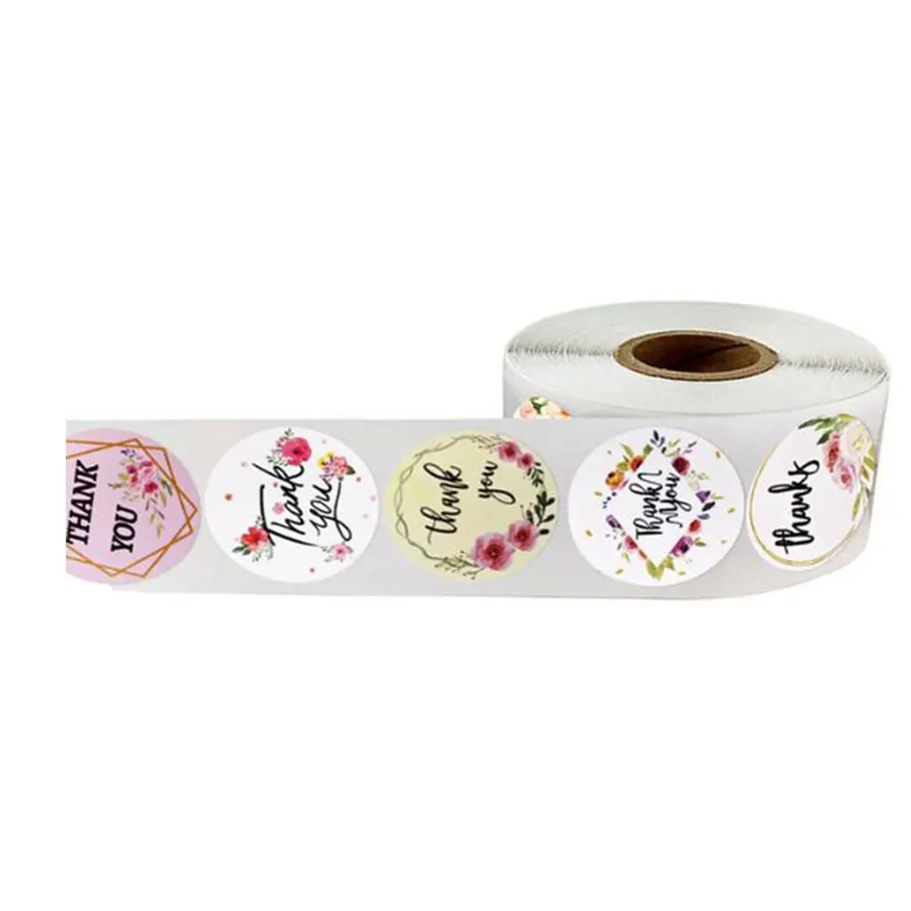 500 шт.рулон спасибо цветок наклейки праздничные Свадебные украшения настенные наклейки круглые самоклеящиеся этикетки для печати 4 дюйма