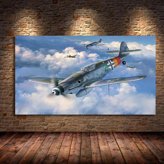 Bf109 истребитель воздушной битвы моносамолет истребитель классический самолет для гостиной домашний Настенный декор деревянная рамка тканевый постер icon star icon star icon star icon star icon star