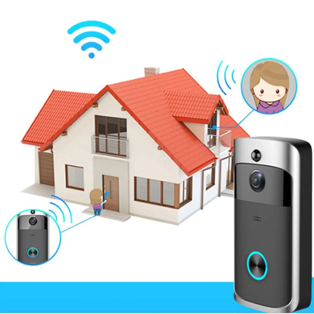 Умный дверной звонок с Wi-Fi и видеозвонком, двусторонний аудио и визуальный домофон с камерой, удаленный просмотр, датчик движения PIR, для домашней безопасности