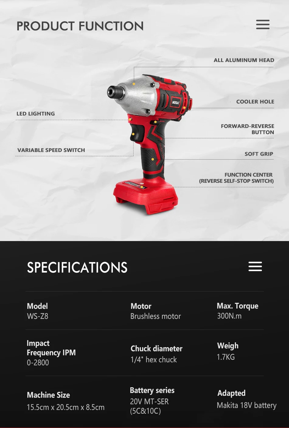 Электрический гаечный ключ VVOSAI MT-Series, беспроводной гайковерт...