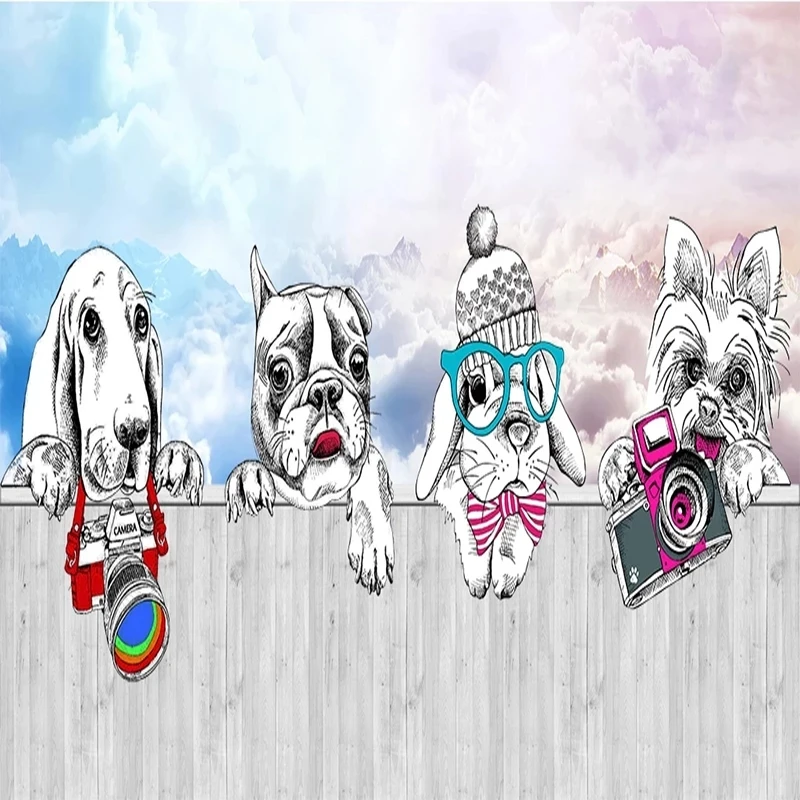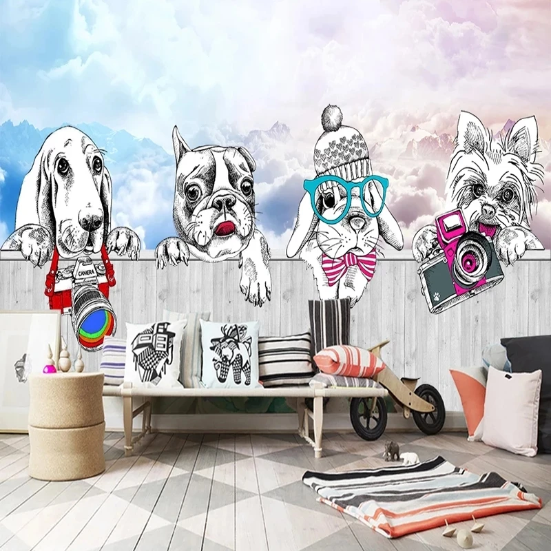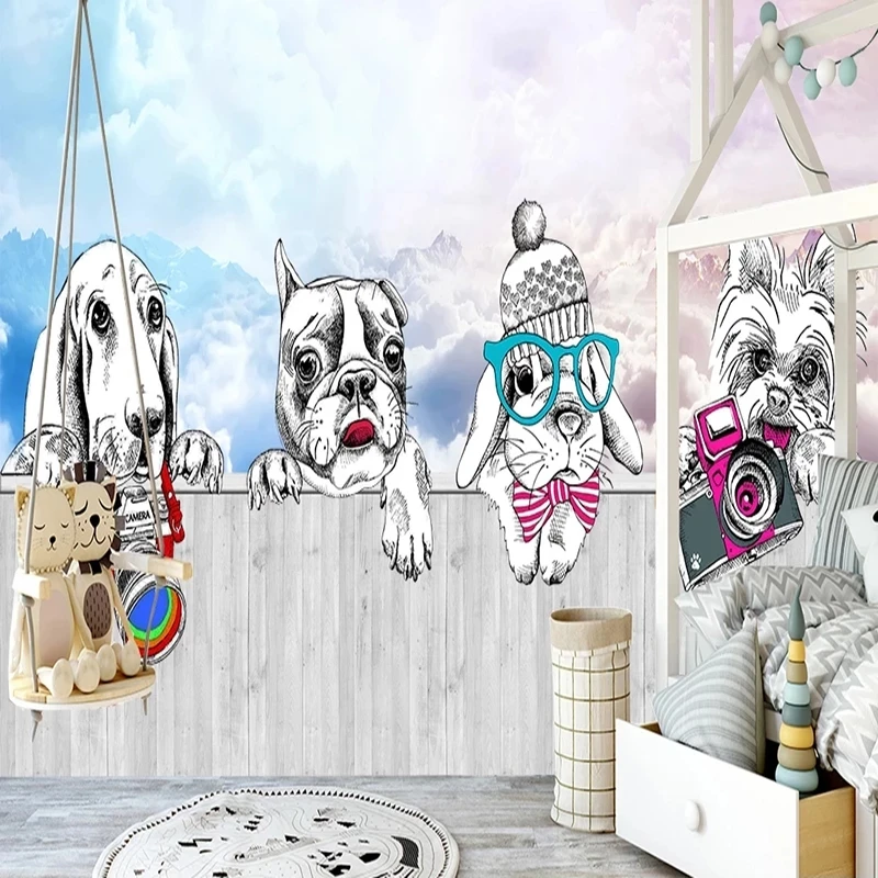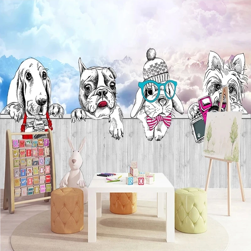 Самоклеящиеся фотообои по индивидуальному размеру, 3D Мультяшные животные, кролик, щенок, фрески для детской комнаты, настенные Стикеры, декоративная картина