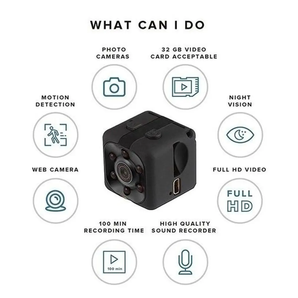 Особенности: Водонепроницаемый чехол для подводного мира. Водонепроницаемость до 30 метров. Это одна из самых маленьких камер, портативная как Карманная камера. Обнаружение движения для безопасности домашнего офиса: Когда обнаруживается незваный гость, движение будет захвачено камерой и сообщено вам. Довольно хорошо, как камера няни безопасности или монитор младенца. Спортивная камера позволяет управлять камерой через телефон в режиме реального времени. Описание: Обработка изображений является стабильной и реалистичной. Совместимость с устройствами IOS и Android. Легко управлять камерой и управлять фотографиями и видео на вашем телефоне. Спецификация: Режим: SQ11 Материал: АБС-пластик Цвет: черный, красный, синий Размер: 25*24*24 мм Тип: 1080P Аккумулятор: 200 мАч Посылка включает в себя: 1 x цифровая камера Примечание: Пожалуйста, учитывайте погрешность в 1-3 мм из-за ручного измерения и убедитесь, что вы не возражаете перед заказом. Цвет фактического товара может немного отличаться от приведенного выше изображения из-за различий в экране компьютера, спасибо за понимание.