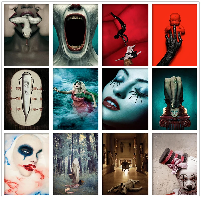5D полноразмерная алмазная живопись сделай сам, американская история ужасов, плакат из белой бумаги, Алмазная мозаика, вышивка крестиком, искусство, домашний декор