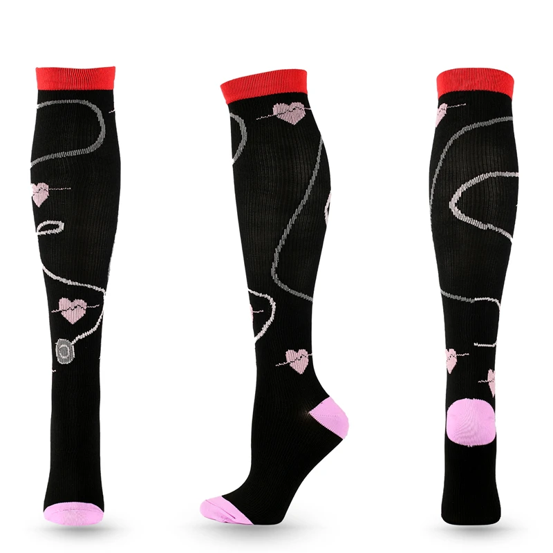 Носки компрессионные унисекс, уличные длинные чулки унисекс в горошек, с рисунком сердца, шапки для бега, велоспорта, черные