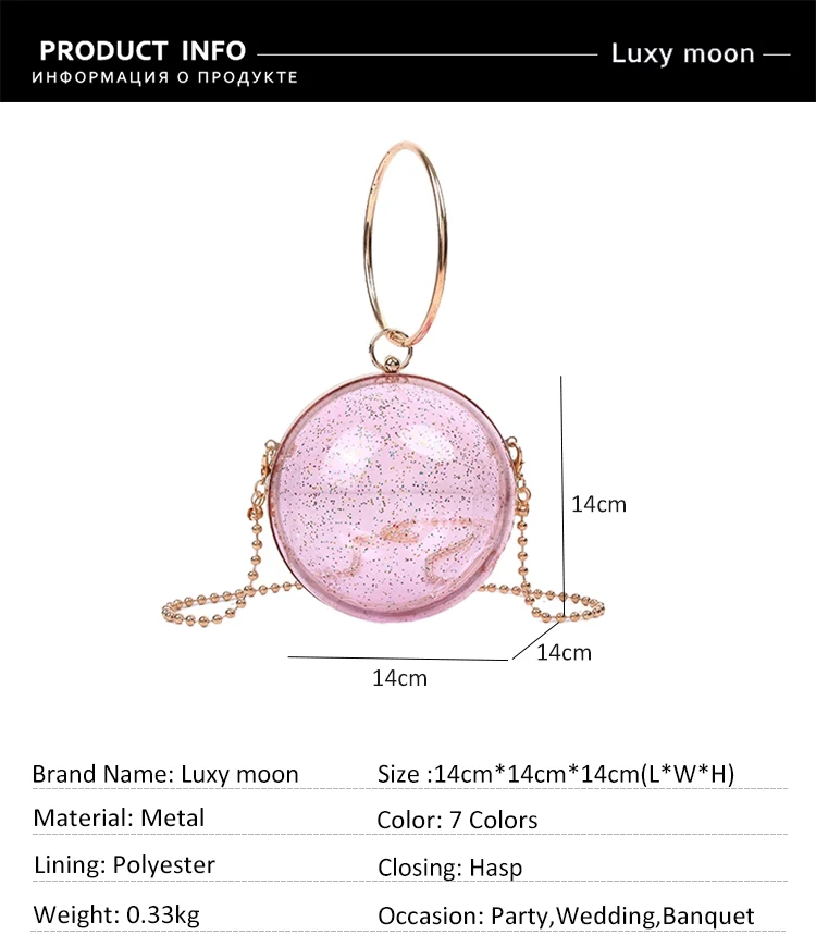 Женская прозрачная сумка-клатч Luxy Moon, вечерняя сумка на плечо с цепочкой, вечерние сумочки в форме бочонка, K048