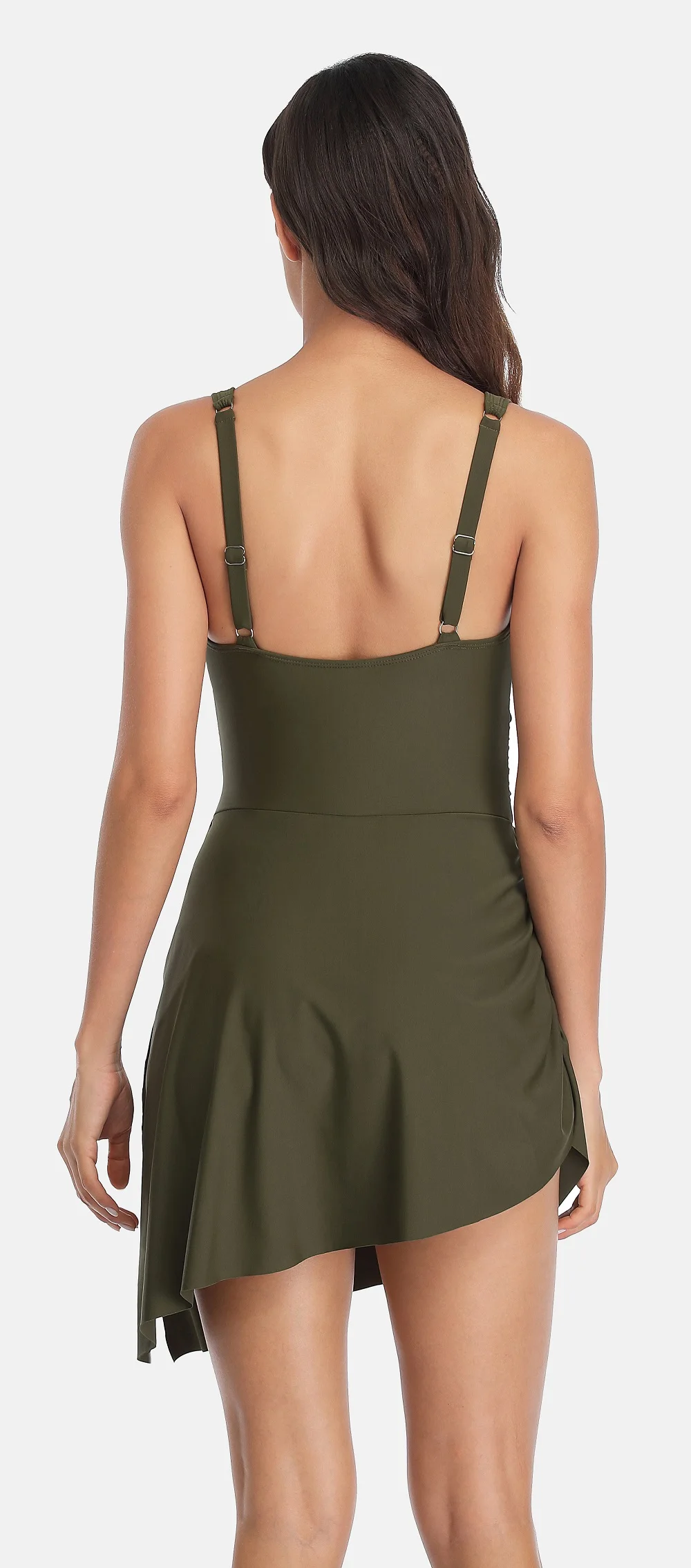 Женский сплошной купальник с глубоким V-образным вырезом и открытой...