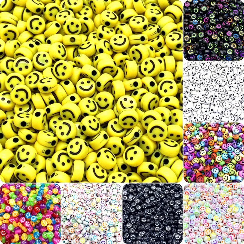 710mmm круглый Форма акриловые разделенные бусины улыбающееся лицо бусины для самостоятельного изготовления ювелирных изделий браслет с шармами Necklac