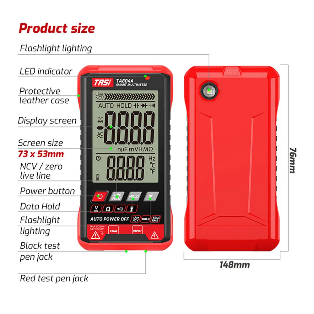 Цифровой мультиметр TASI TA804AB, ультратонкий Интеллектуальный Бесконтактный индикатор напряжения, автоматический тестер, автоматический и ручной двойной режим
