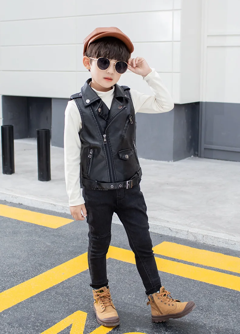 Жилет из искусственной кожи с заклепками для маленьких мальчиков и ...