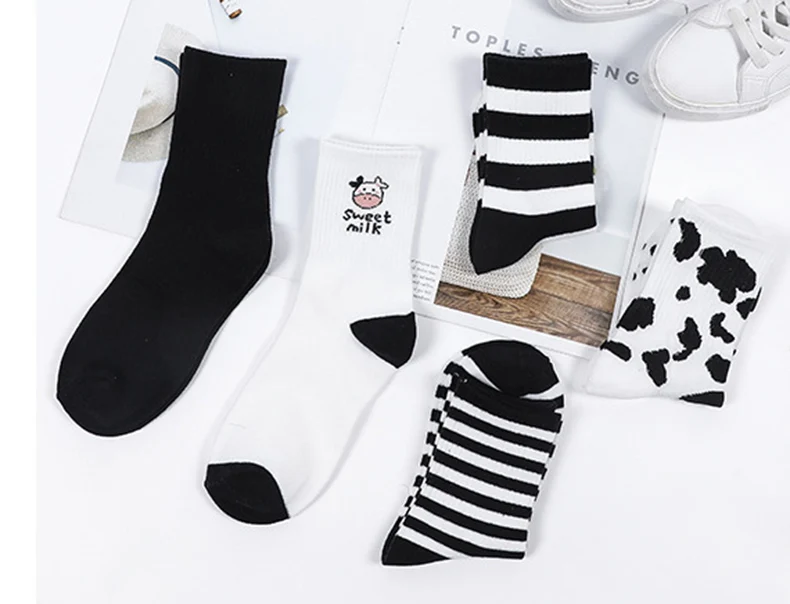 Женские носки осеньзима женские носки средней длины модные черно-бе...