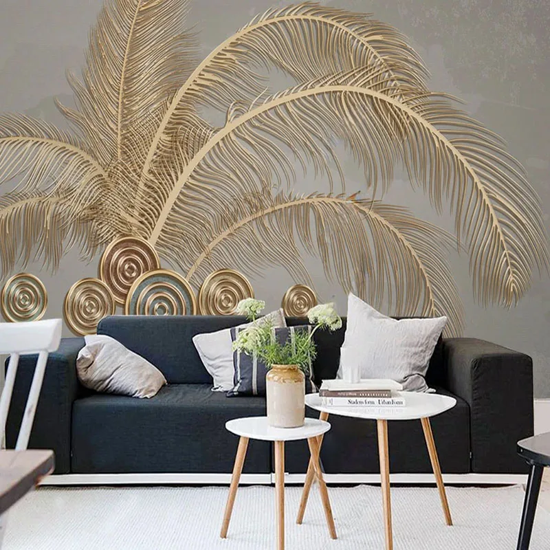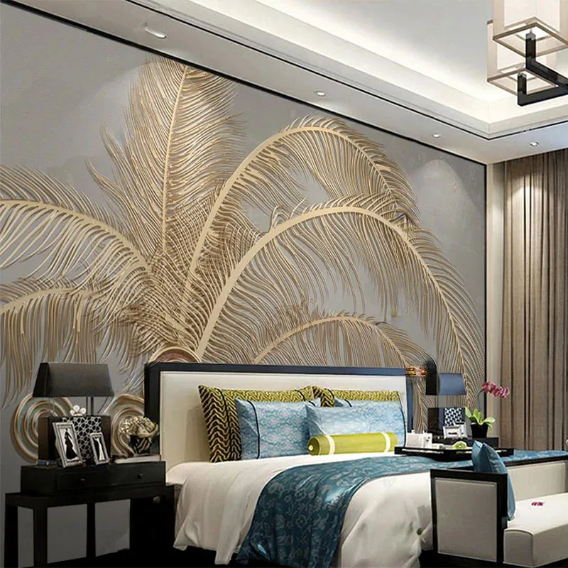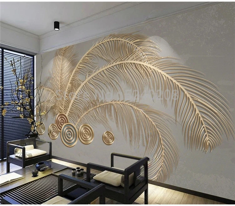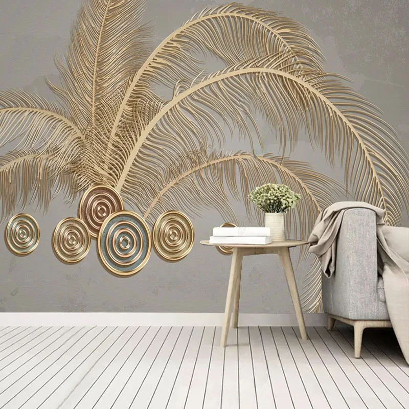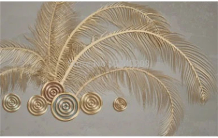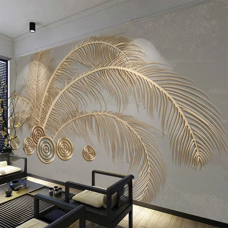 Настенные 3D-обои на заказ с изображсветильник модных перьев, Роскошные 3D Золотые тисненые линия, фоновые настенные Стикеры, наклейки