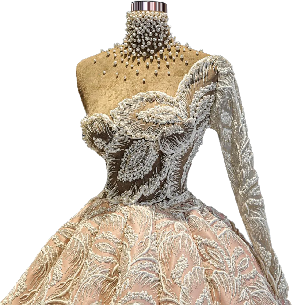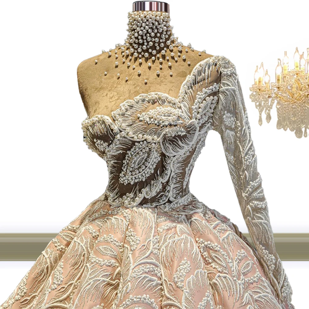 Floria Свадебная вечеринка платье жемчуг Длинные рукава Свадебное п...