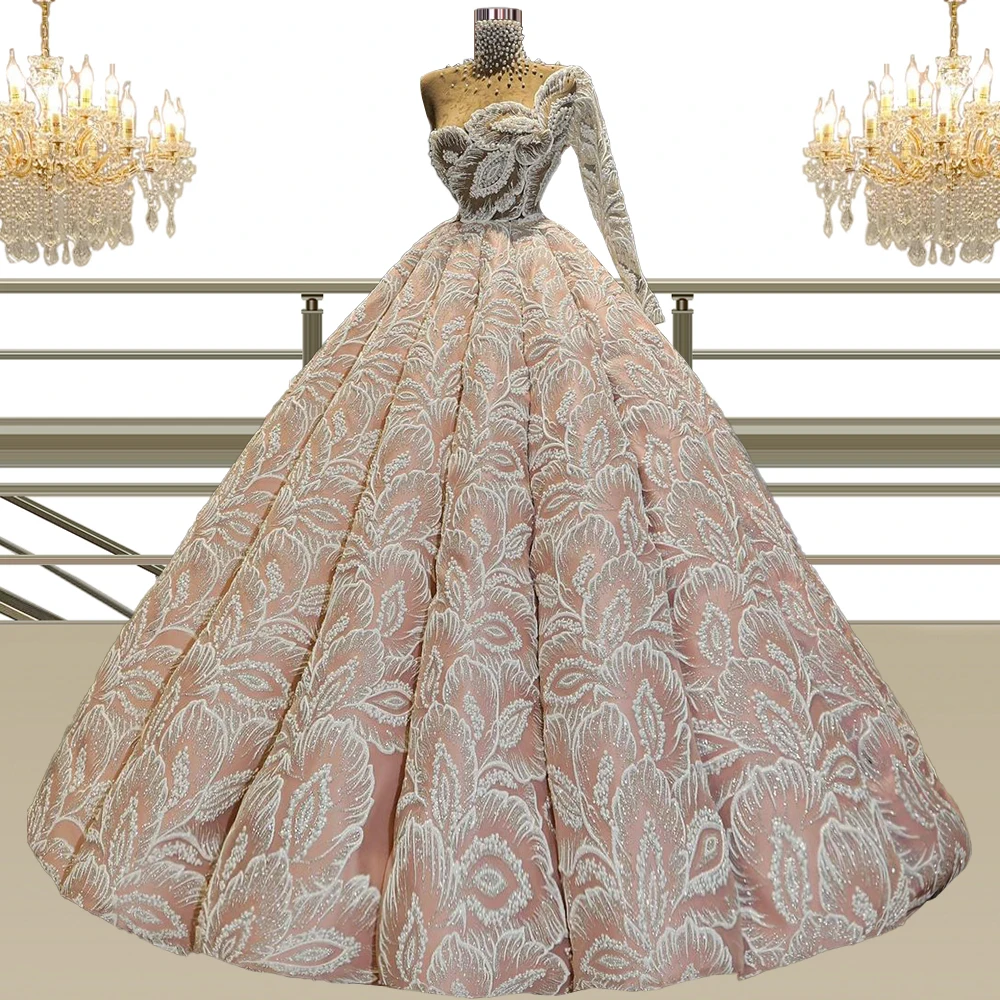 Розовое золото с длинным рукавом 3D Цветочное платье для выпускного...