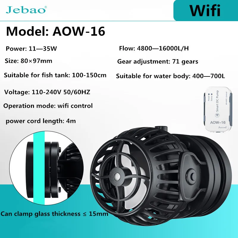 Беспроводной волновой насос для морского аквариума Jebao MOW-3, MOW-5, MOW-9, MOW-16, MOW-22, Wi-Fi, ЖК-дисплей, контроллер