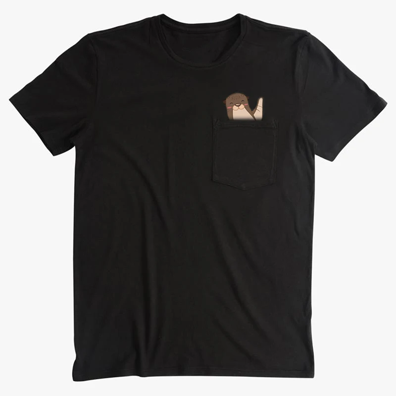 Хлопковая футболка CLOOCL с карманом, летняя забавная Футболка с принтом выдры, мужские и женские Рубашки, Топы, хлопковые черные футболки