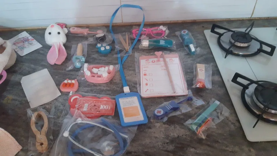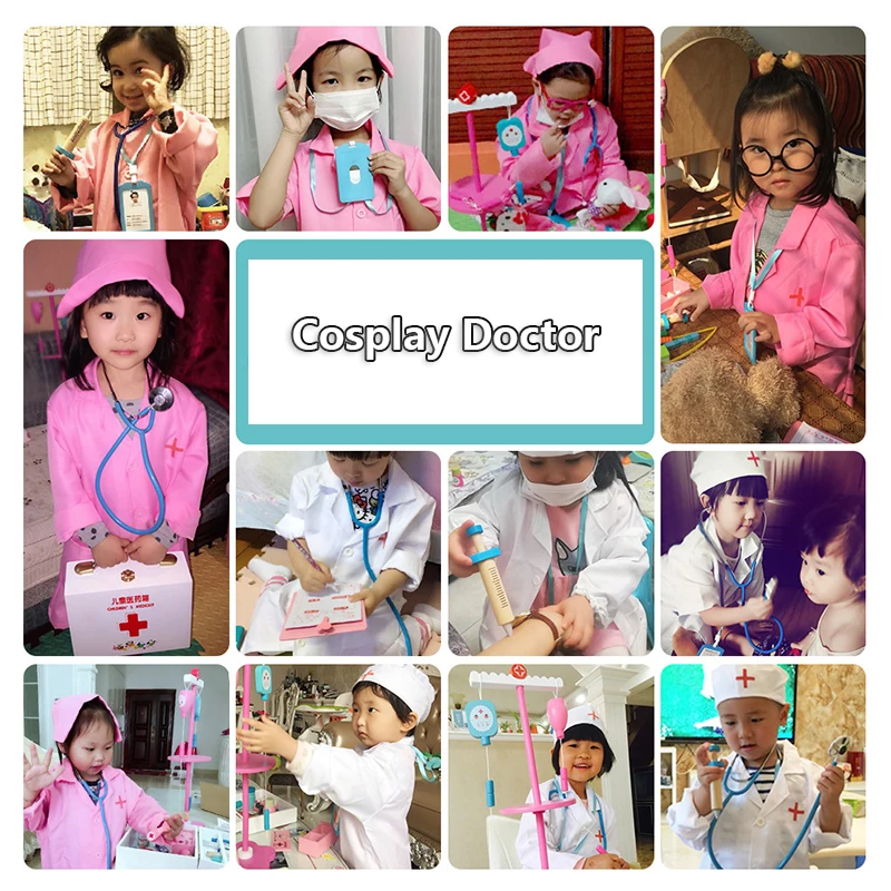 Детский набор для ролевых игр, детский деревянный набор для ролевых игр, красный медицинский стоматолог, тканевый чехол