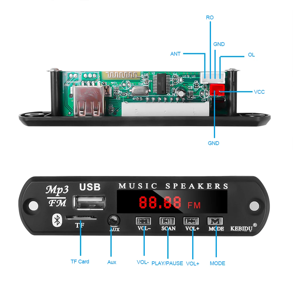 KEBIDU 12 в беспроводной Bluetooth MP3 WMA декодер плата аудио модуль USB SD(TF) AUX FM радио с пультом дистанционного управления для автомобиля DIY динамик