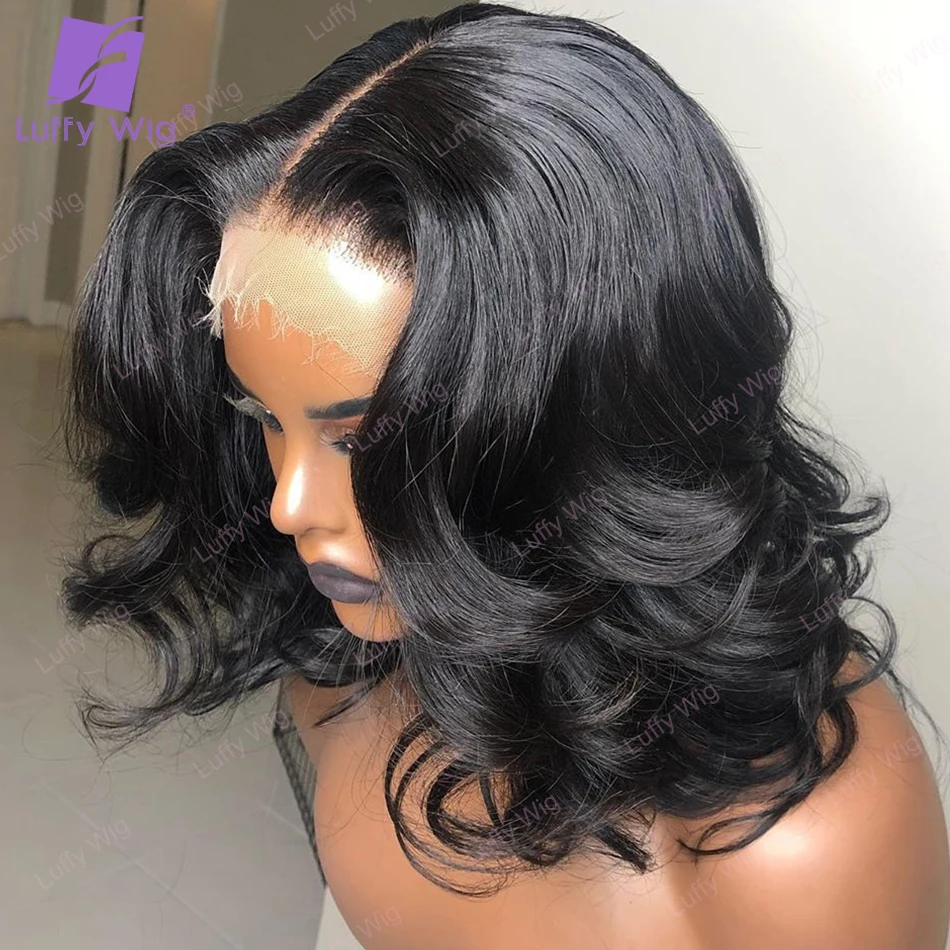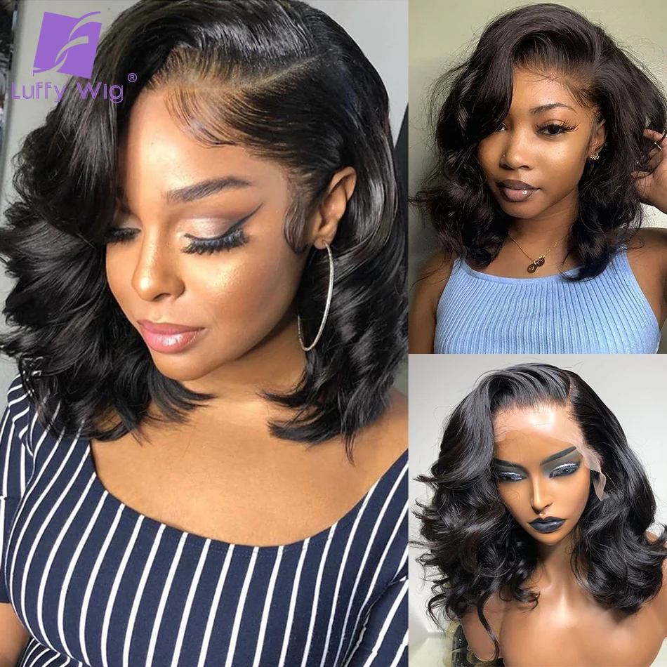200% Плотность 13x6 короткий Боб кружевной передний парик предварительно выщипанные Remy бразильские человеческие волосы парики HD Прозрачная Кружева для черных женщин Luffy