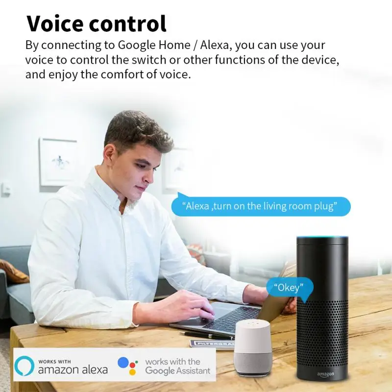 Эта умная вилка позволяет управлять голосом с помощью Alexa/Google Assistant.