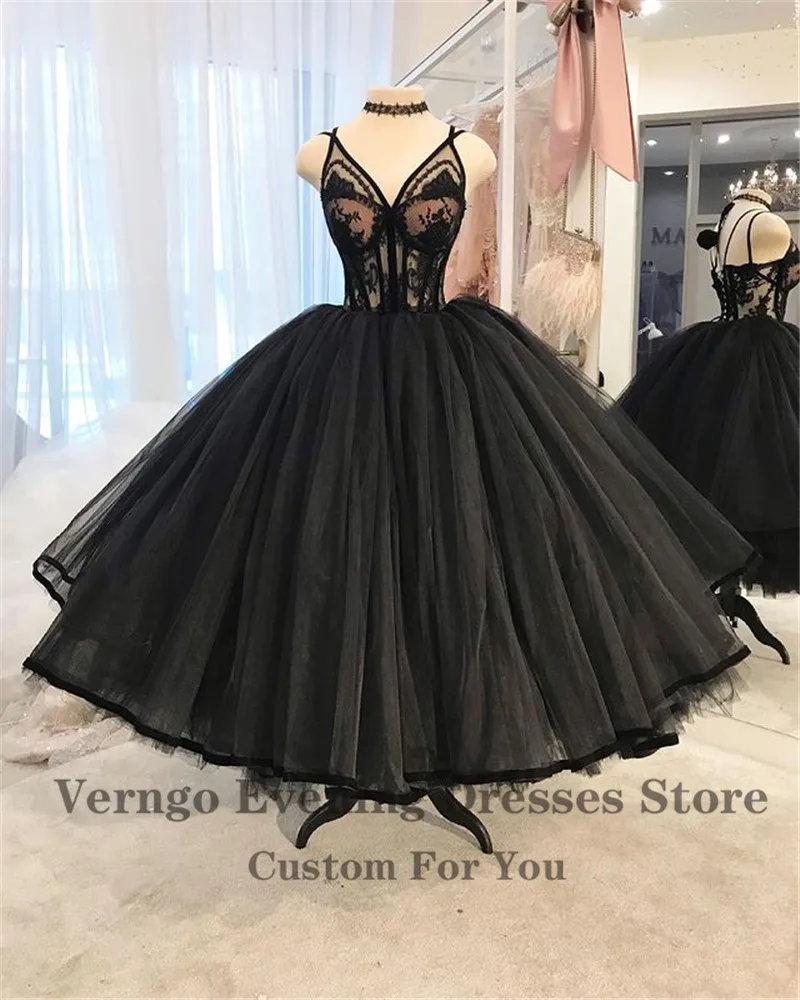 Бальное платье Verngo, черное Тюлевое платье для выпускного вечера с кружевной аппликацией и V-образным вырезом, пышный корсет, вечерние платья до щиколотки, официальное платье 2021