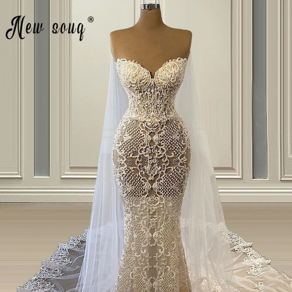 Дубай Русалка Милая свадебное платье с длинной накидкой Для женщин к требованиям заказчика; Сверкающие; Кристаллами бриллиантами свадебное кружевное платье со шлейфом платье vestido de noiva