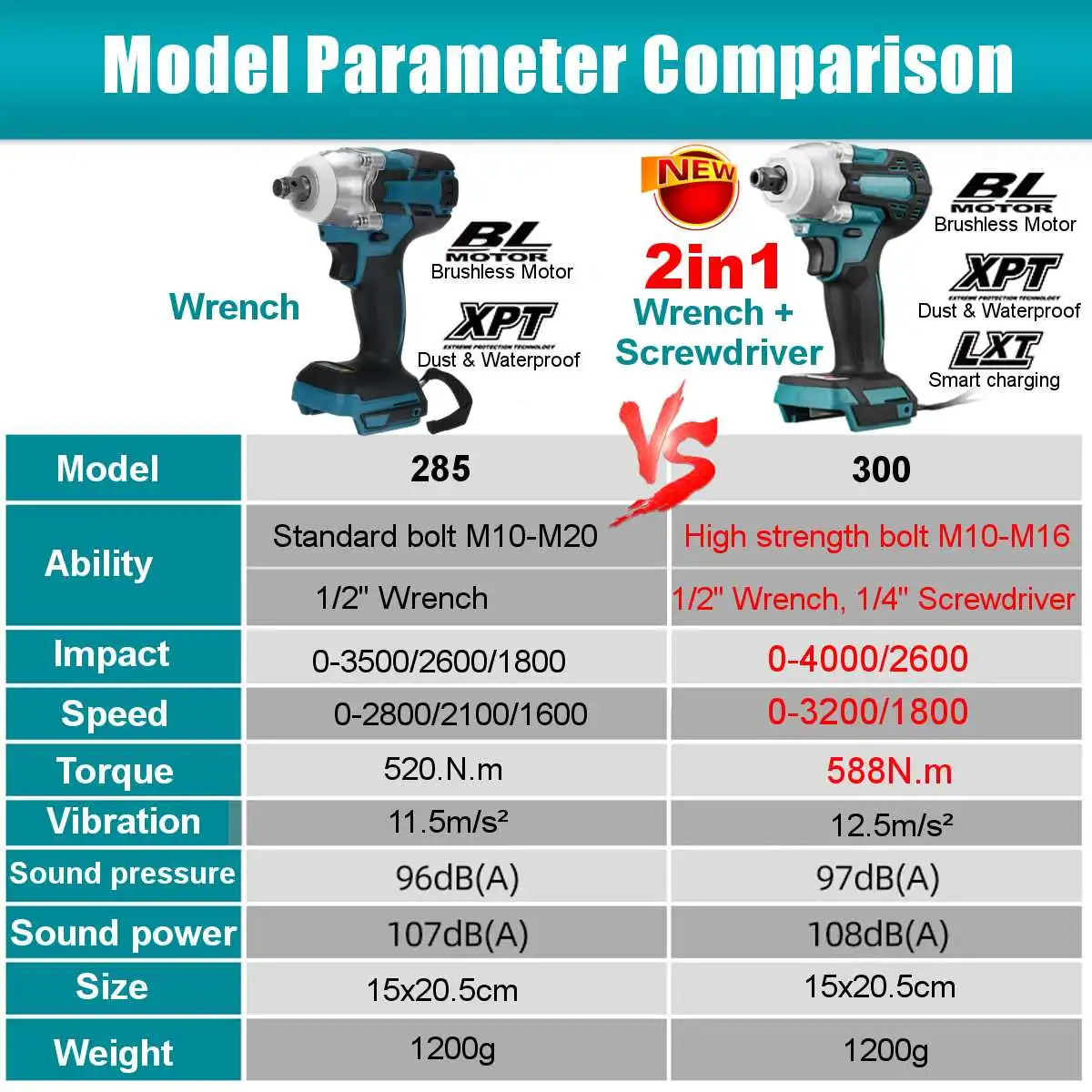 2 in118V 588N.m. Литий-ионный бесщеточный беспроводной электрический1/2 "ключ 1/4" шуруповертЗамена для аккумулятора Makita