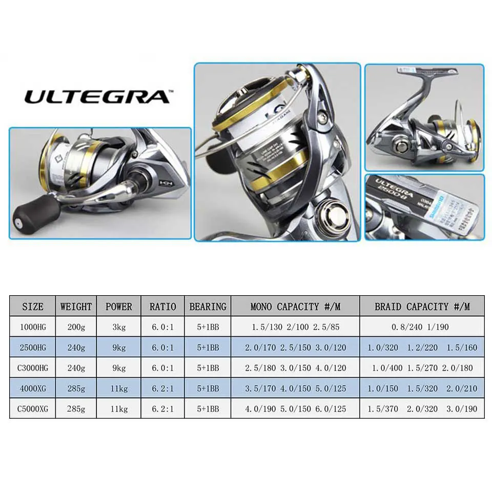 Рыболовная катушка SHIMANO ULTEGRA, спиннинговая катушка для морской и пресной воды C2000HGS2500HGS2500S 6,06,2: 1, водонепроницаемая система