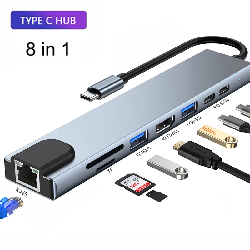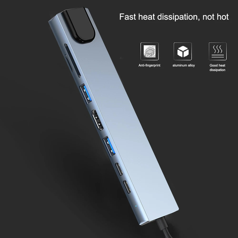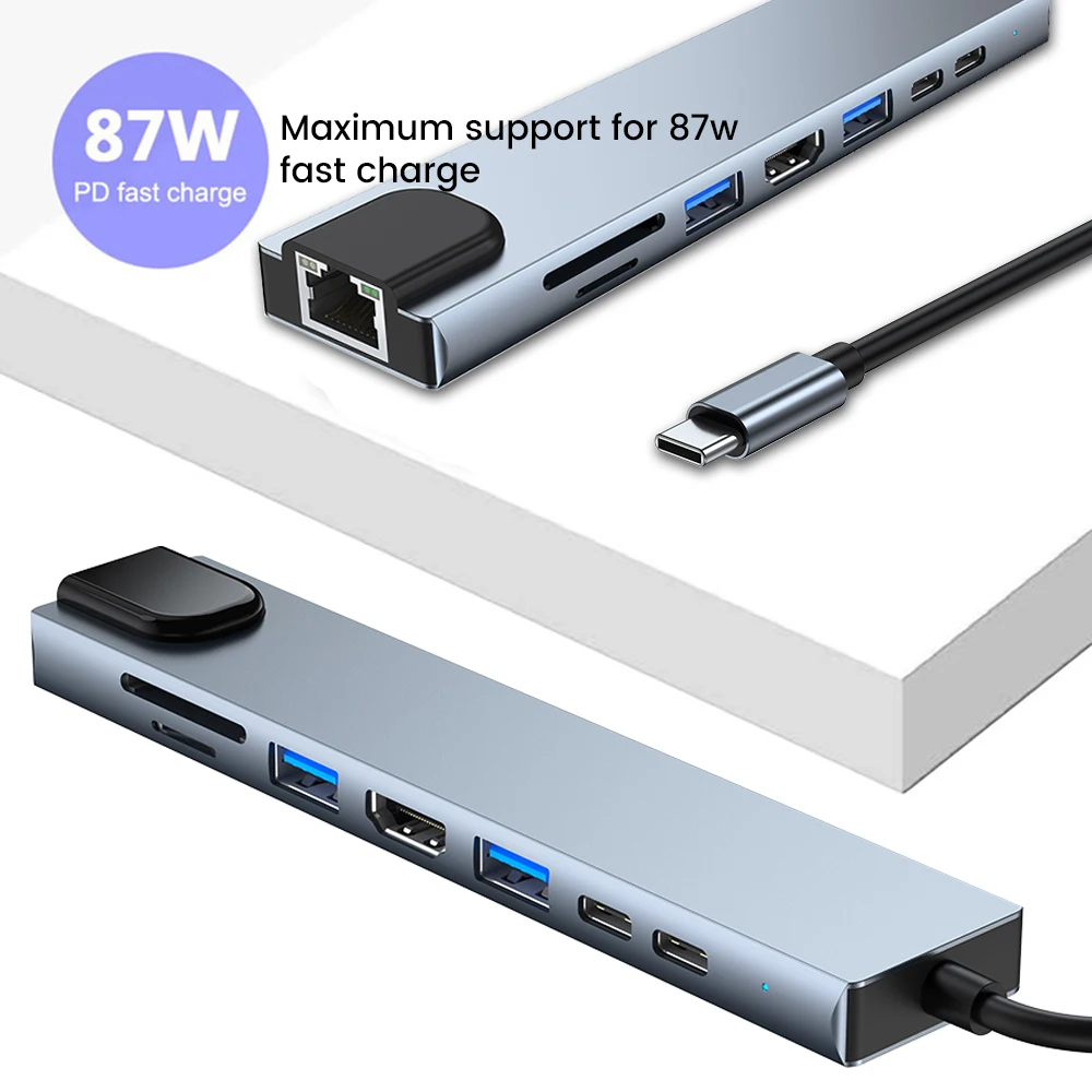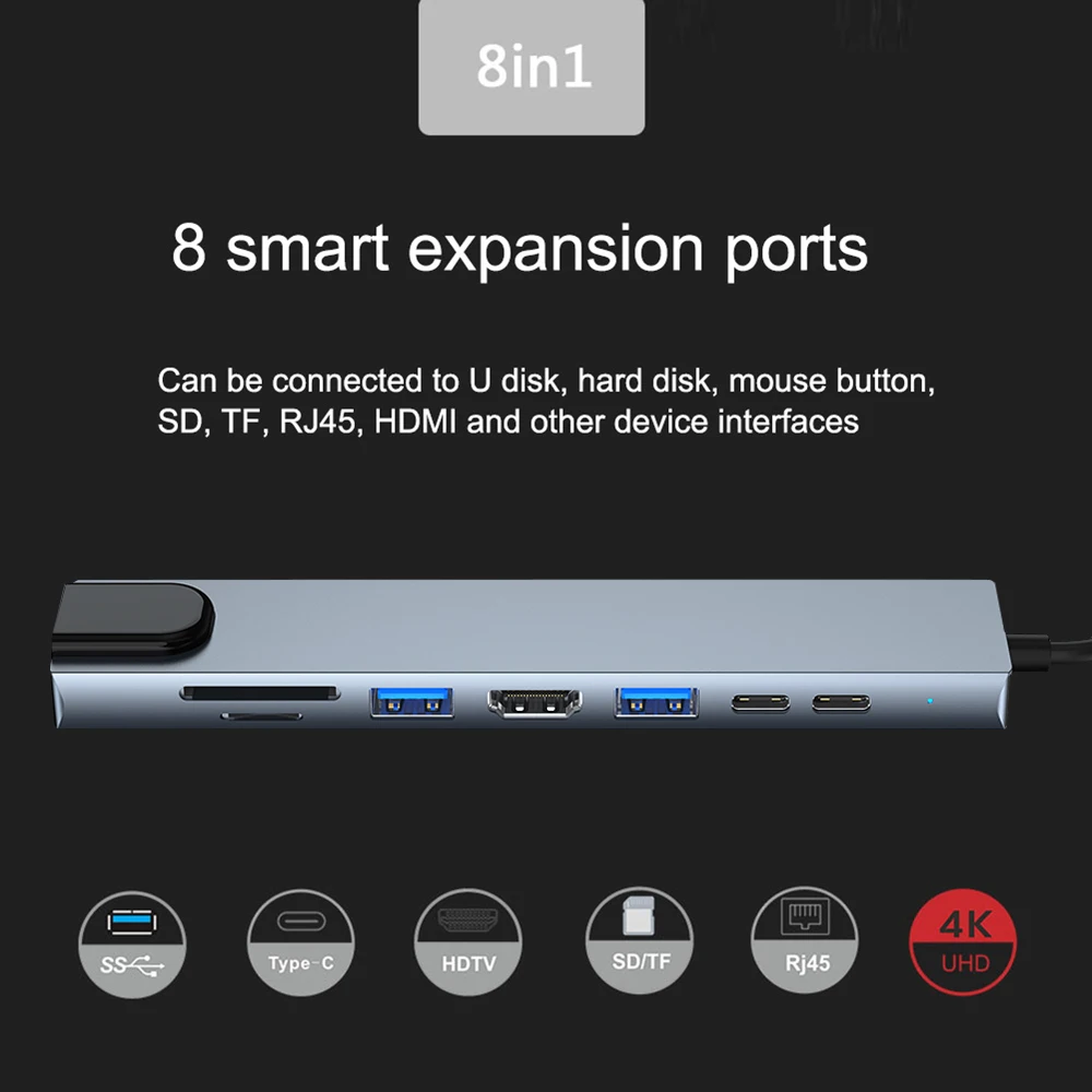 USB-концентратор 8-в-1 с Type-C на 4K HDMI, устройство для чтения карт SDTF RJ45, PD, быстрая зарядка, док-станция для MacBook Air Pro, хаб для ПК
