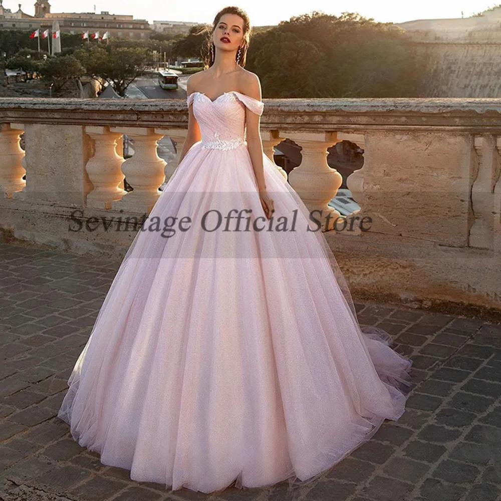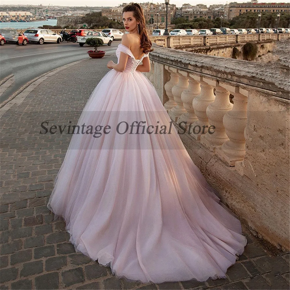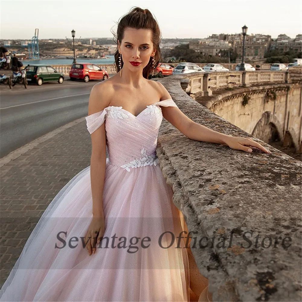 Розовое свадебное платье Sevintage в стиле бохо с открытыми плечами, а-силуэт, свадебное платье невесты, кружевной корсет с аппликацией, платье невесты 2021