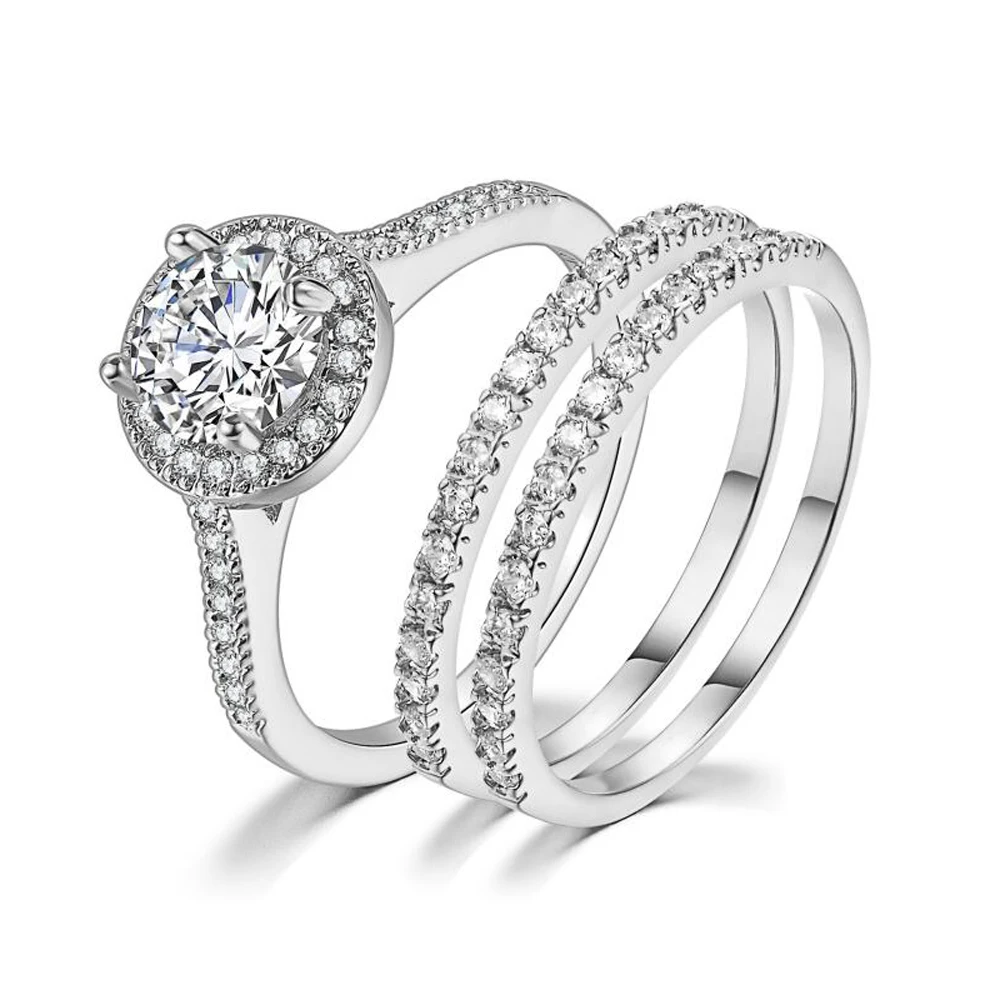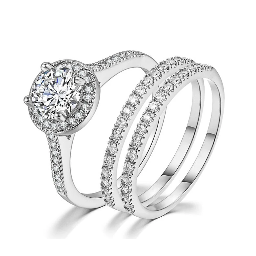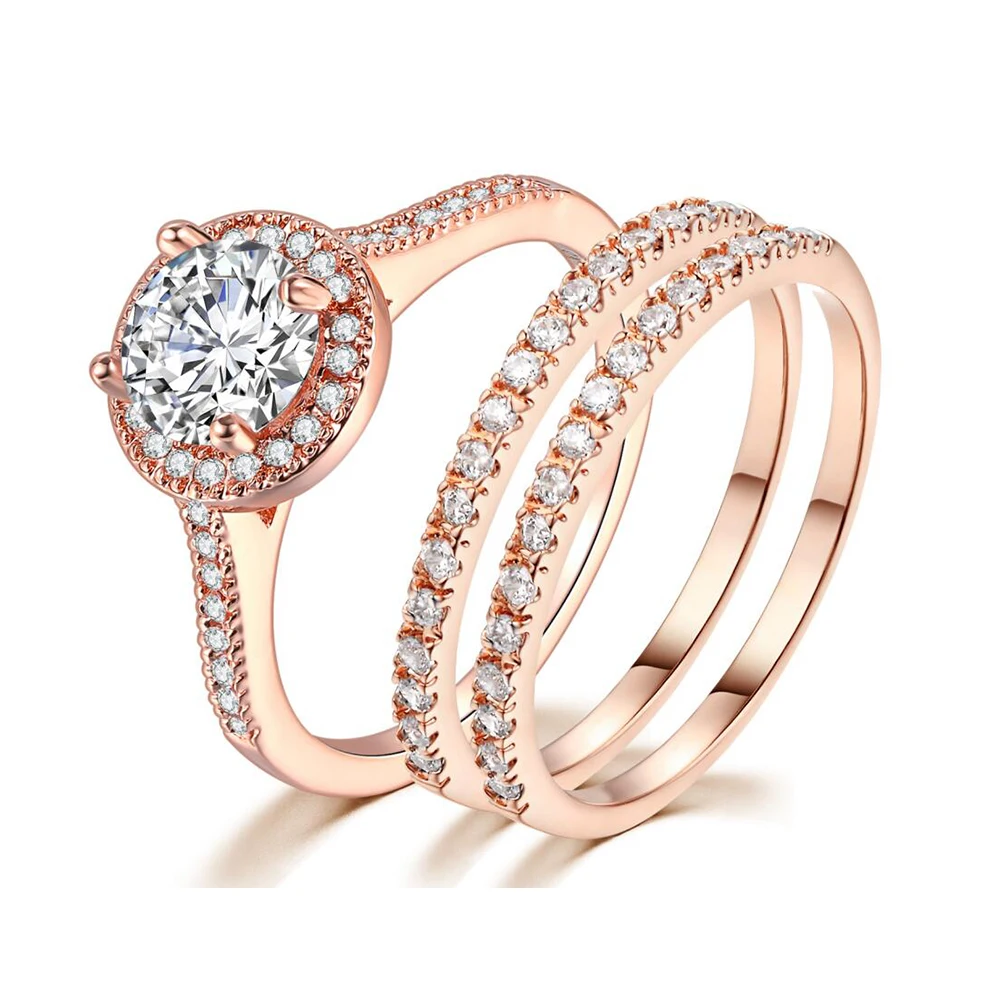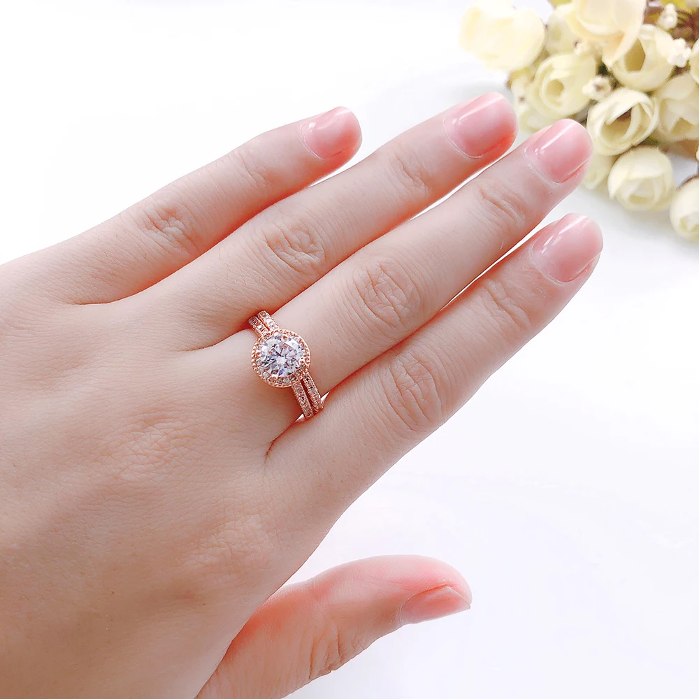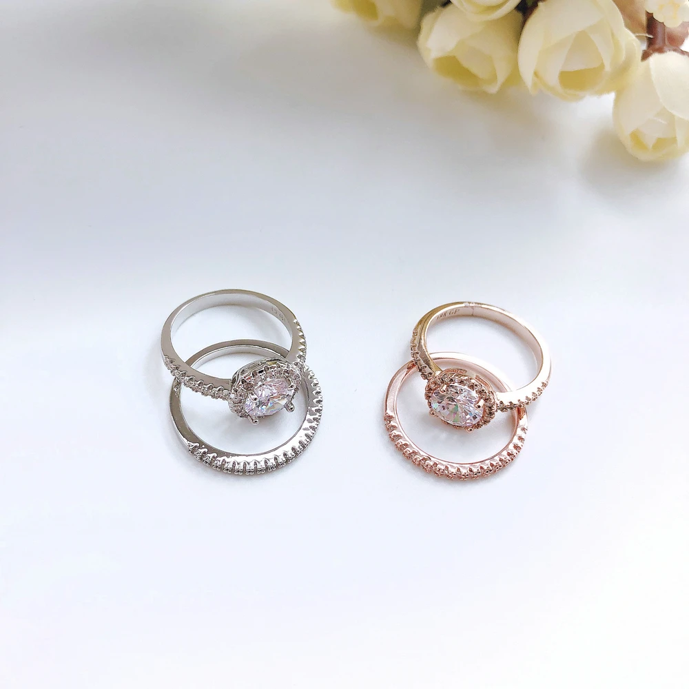 Набор свадебных колец ZHOUYANG для женщин, ювелирные украшения в простом классическом стиле цвета розового золота и серебра с цирконием класса ААА +, подарок 2-3 шт., SR781