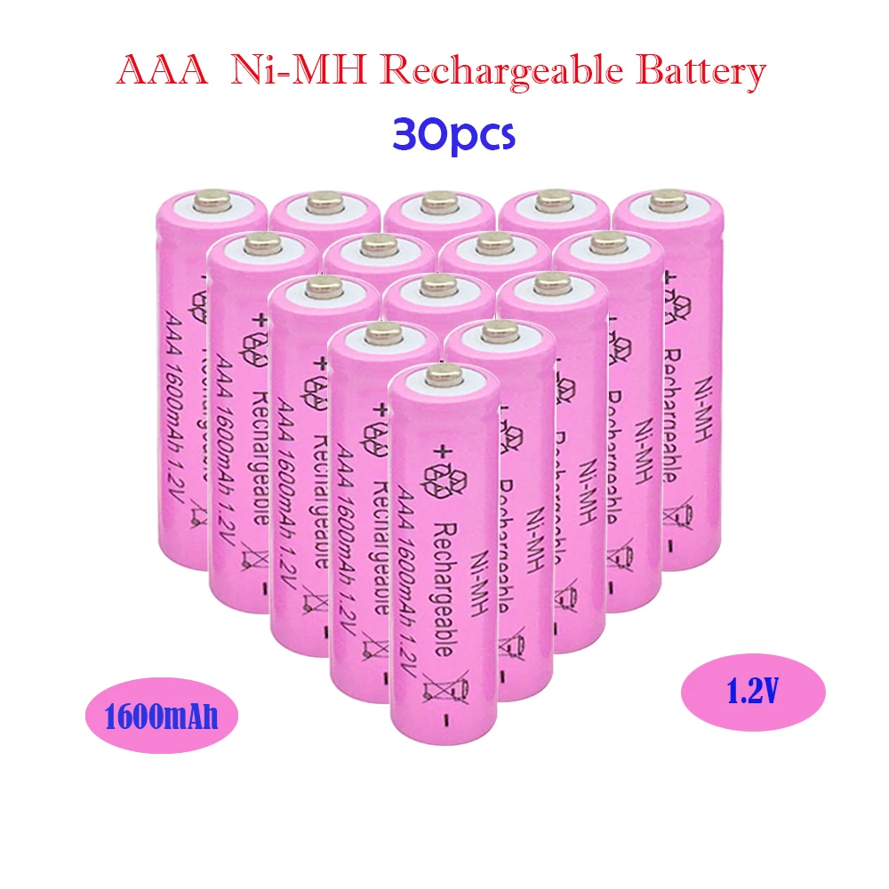 30 шт AAA 1600mAh 1,2 V перезаряжаемые батареи