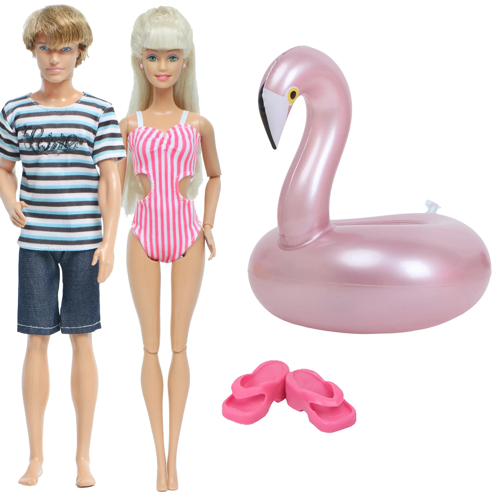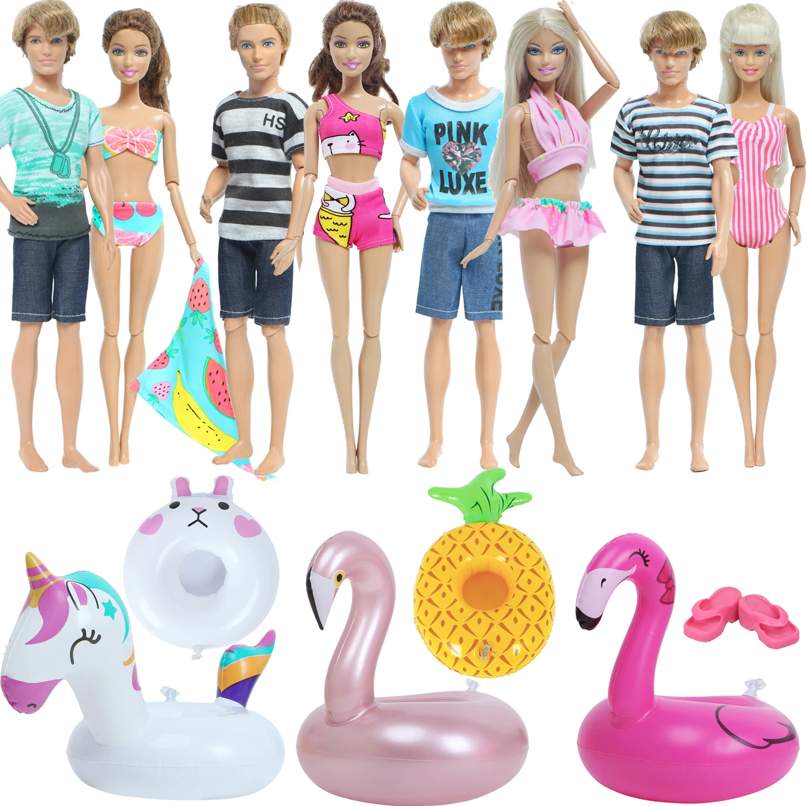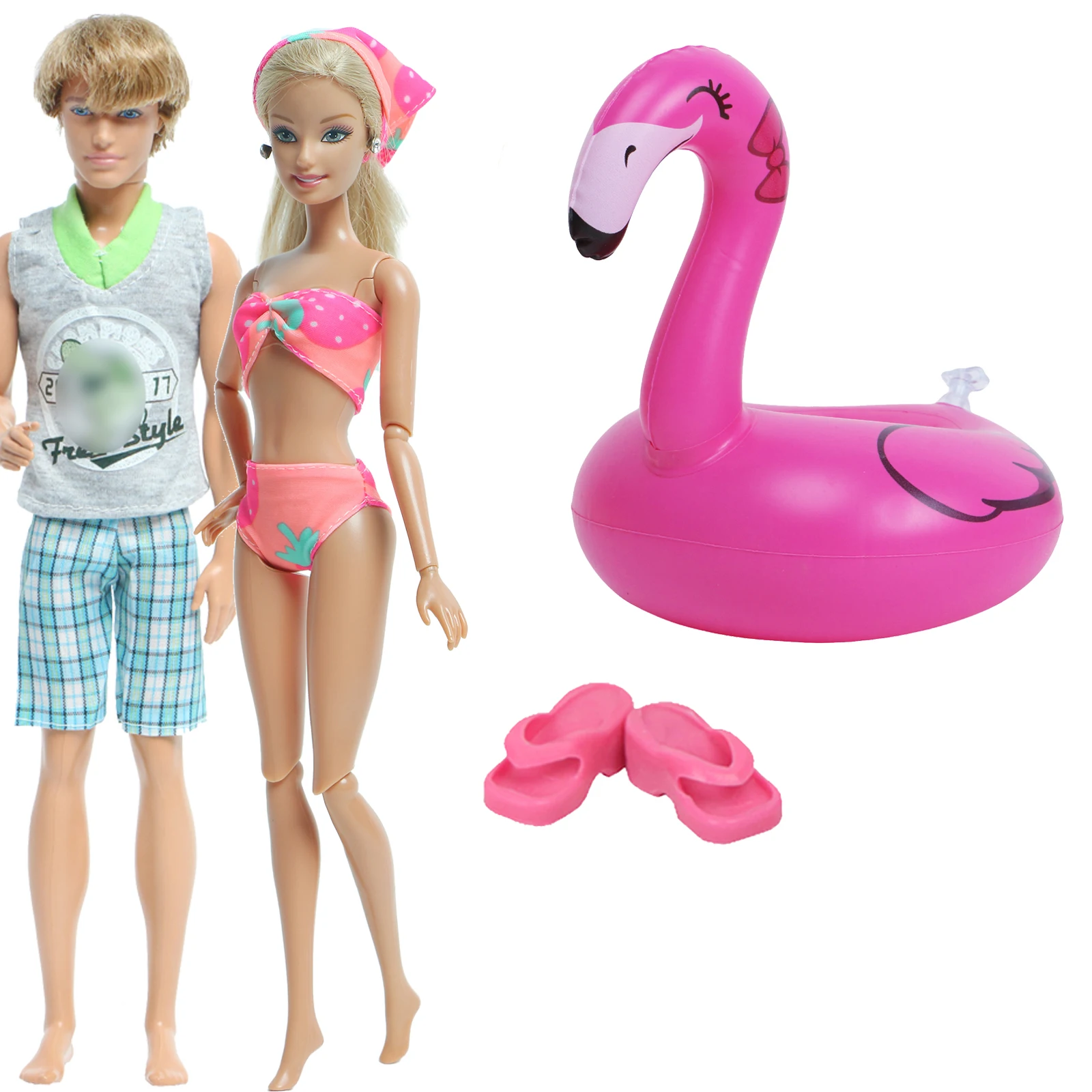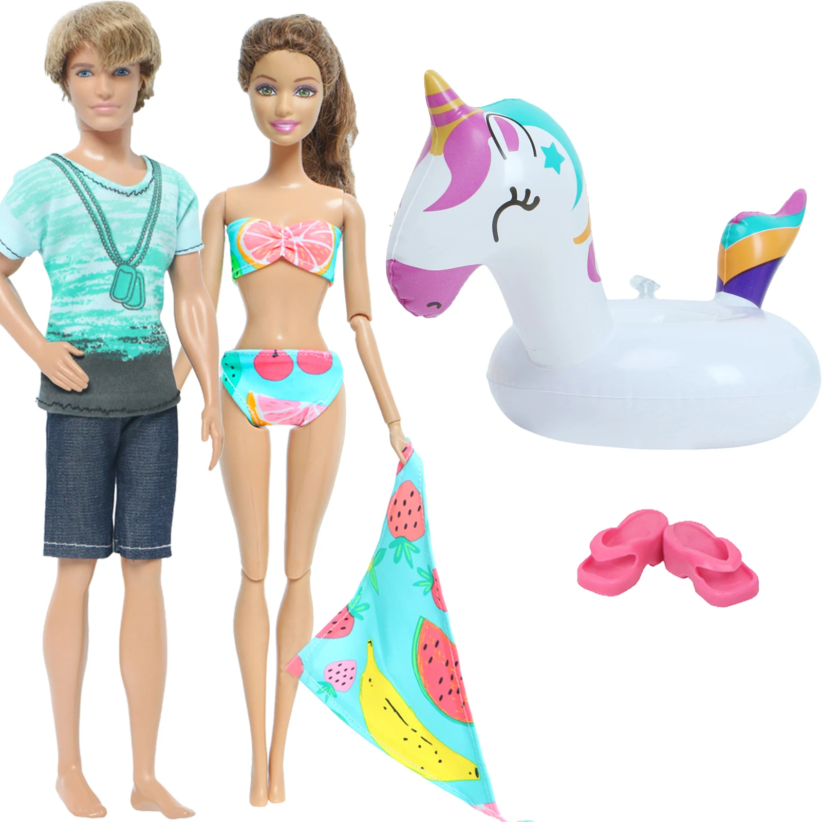4 шт.упак., летняя одежда, Одежда для кукол, мужские наряды + бикини, розовые Тапочки, спасательный круг, аксессуары для куклы Барби, Кен, детская игрушка