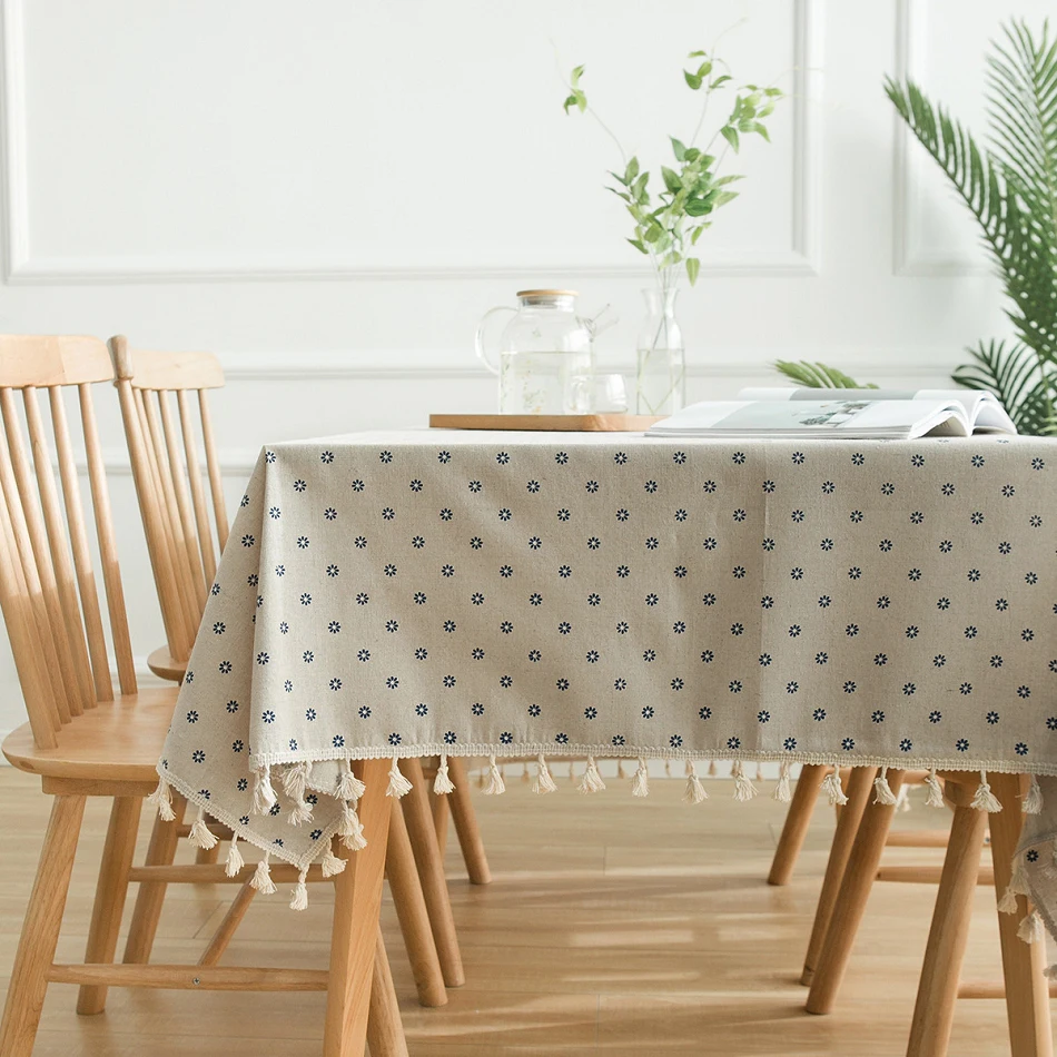 Синяя скатерть с принтом маргариток, хлопок, лен, кисточка, кружево, прямоугольная скатерть, домашнее украшение для сада, дома, коврик