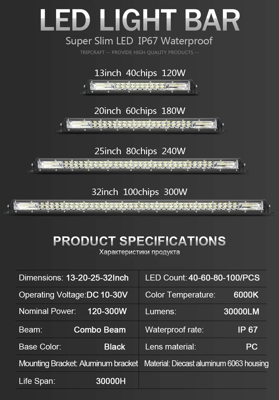 Tripcraft 7-32IN 2 ряда ультра тонкий offroad светильник светодиодный лайтбар с светильник бар комбо луч для трактора 4X4 УАЗ внедорожный 4WD ATV для грузовых автомобилей