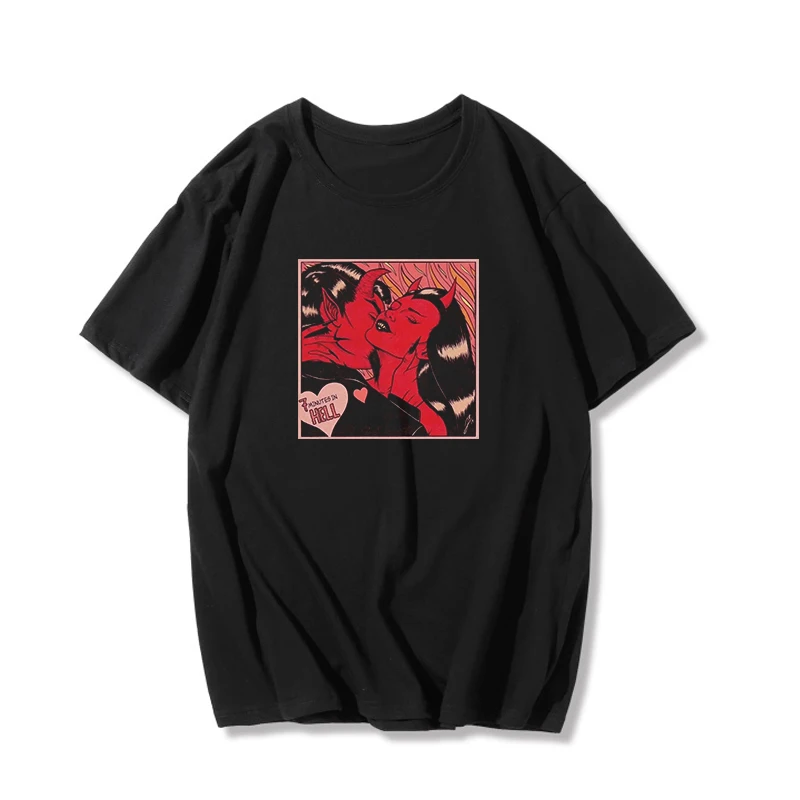 Летняя готическая Черная футболка с надписью сатана, черного дьявол...