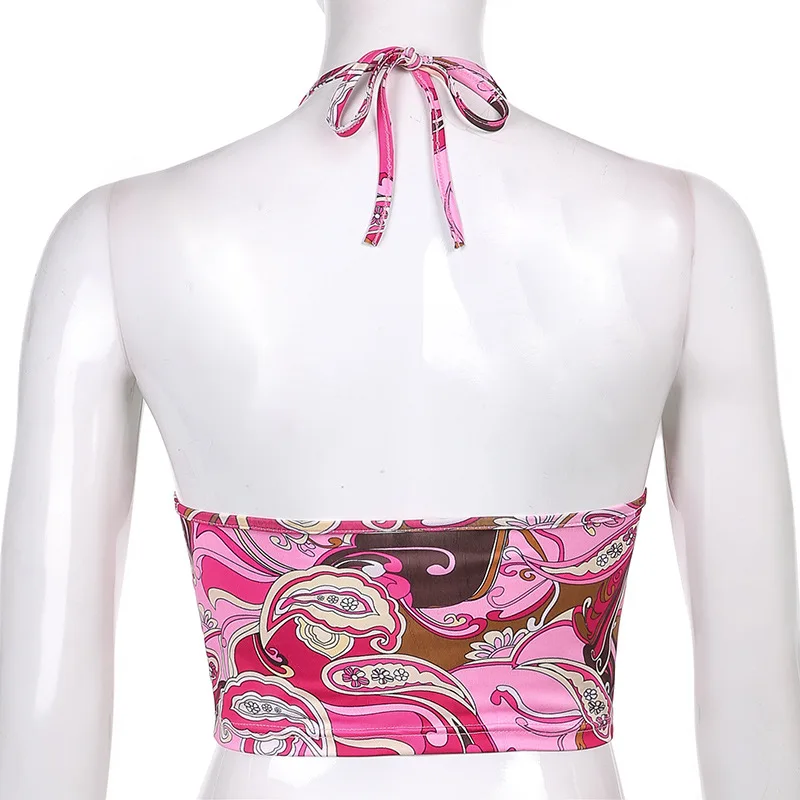 Кроп-Топ женский Y2K с V-образным вырезом, Розовая Майка с блестками и лямкой через шею, Модный милый корсет в стиле 90-х на лето 2021