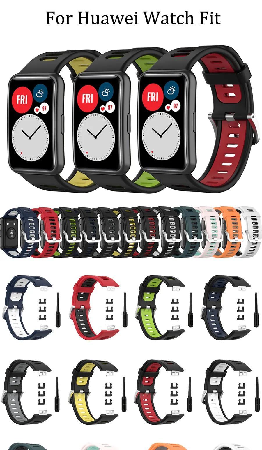 Двойные Цвета, новые силиконовые ремешки для часов Huawei, подходят для умных часов, сменный Браслет для часов huwei, регулируемые
