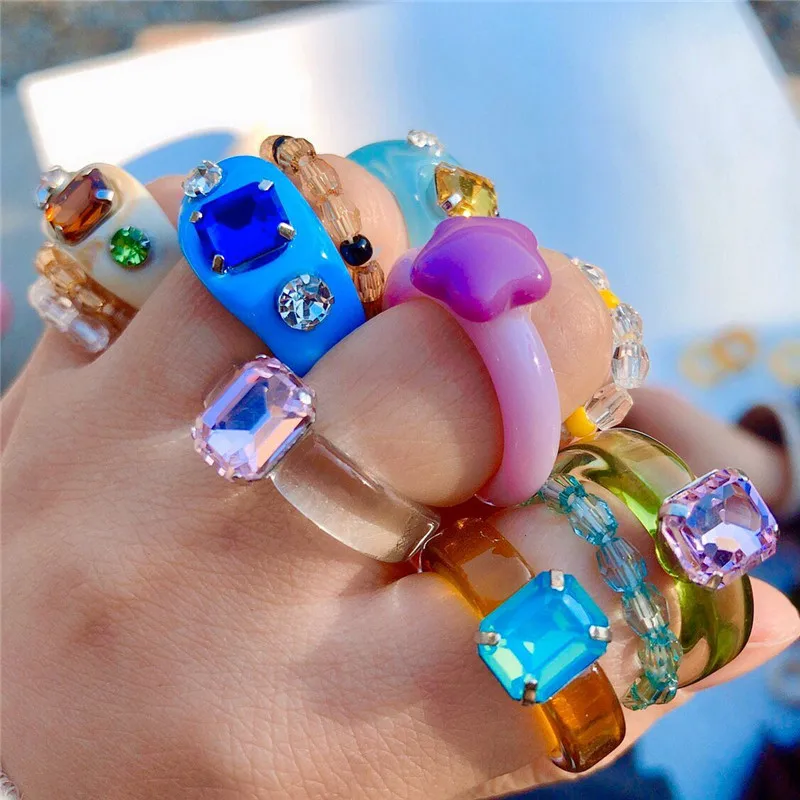 Массивное кольцо стразы, милые кольца из акриловой смолы и глины дл...