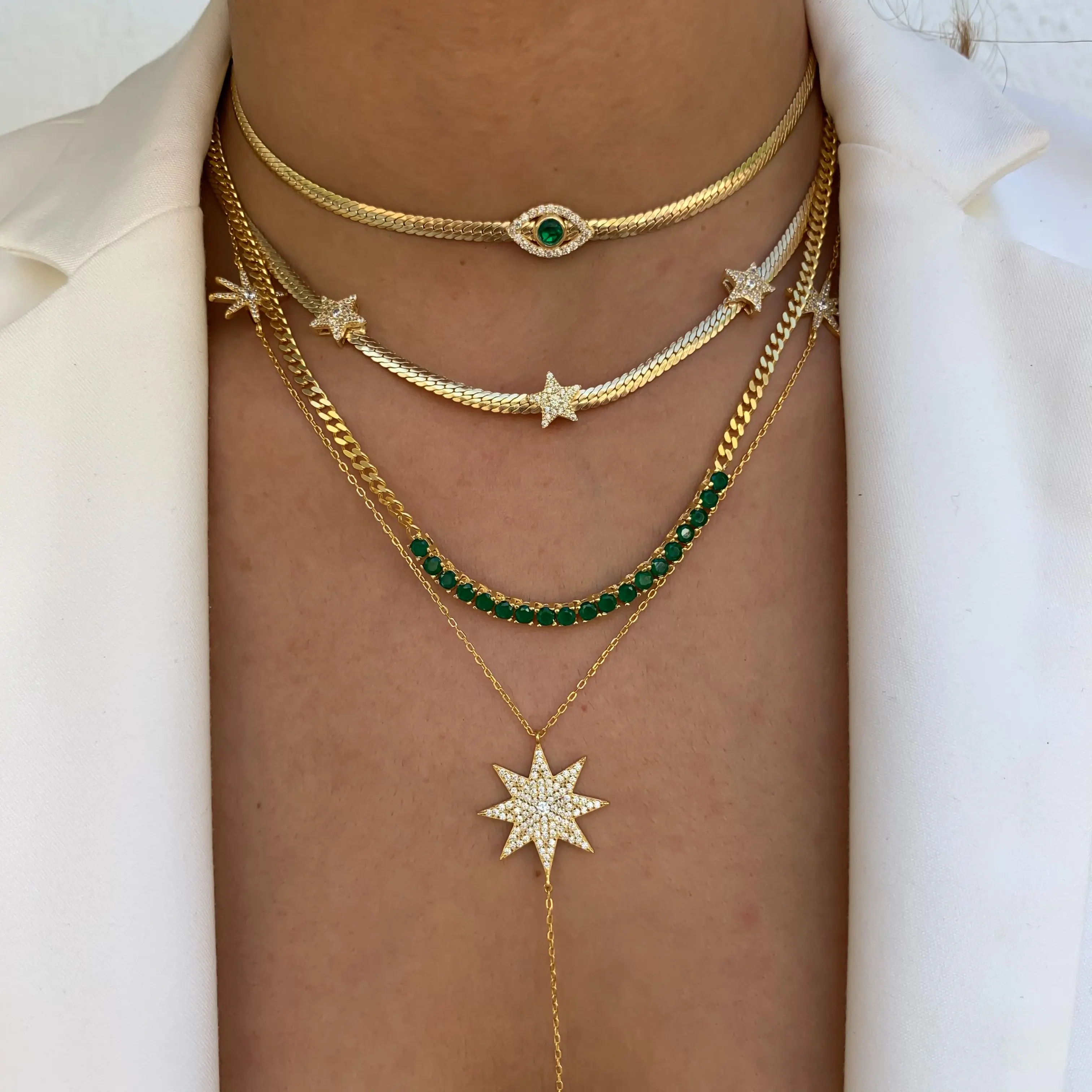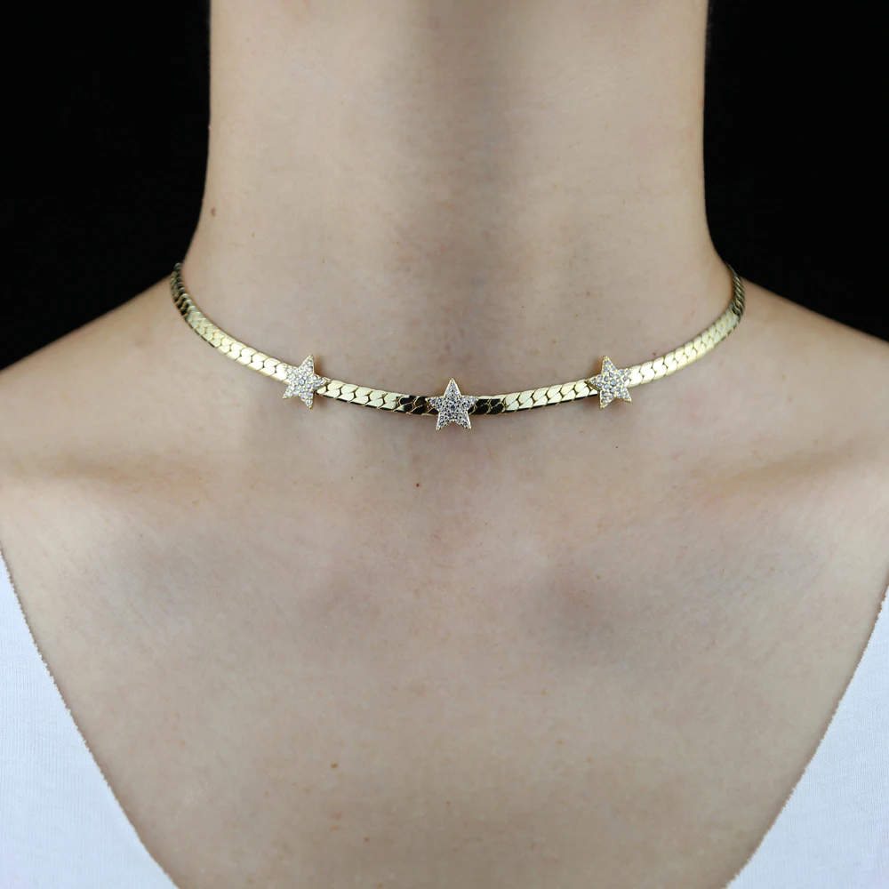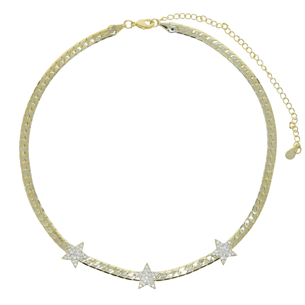 4 мм кубинская цепочка 32 + 10 см чокер микро проложить CZ звезда очарование модное женское Европейское женское ожерелье